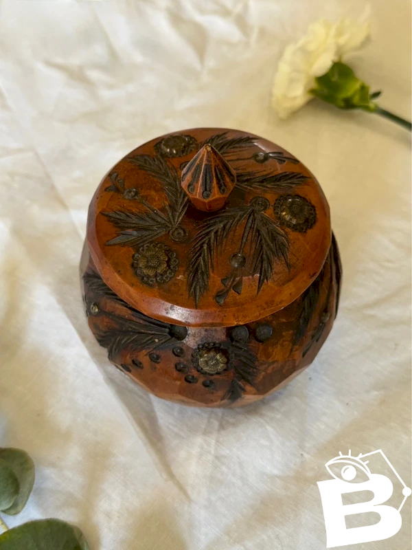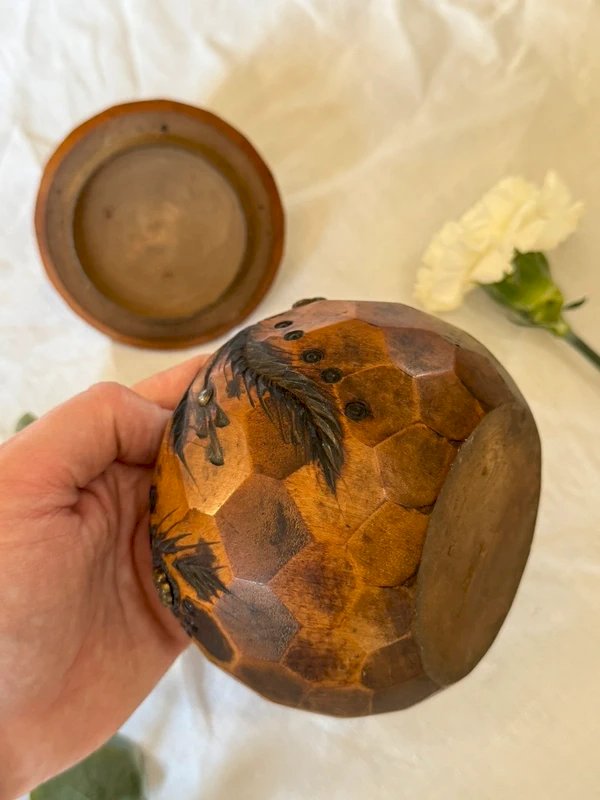 Boîte en bois à facettes des années 1950.