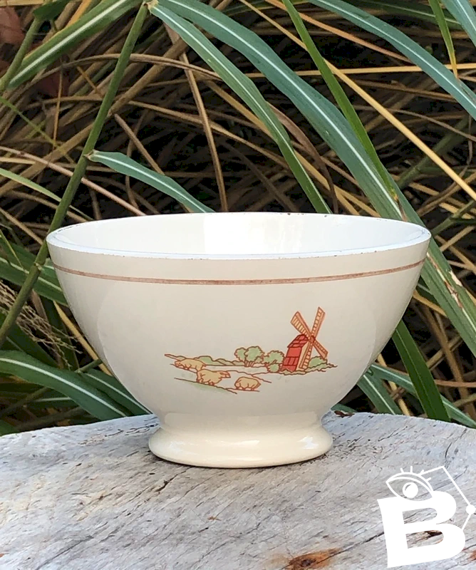 Bol ancien de fabrication Française , l atelier du Moulin , mais non signé Bon état , mais quelques brèches sur le bord , voir les dernières photos Hauteur 8,5 cm Diamètre 14,5 cm