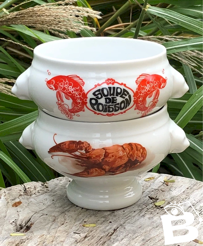 2 Bols à soupe de poissons en porcelaine Bavaria en excellent état Hauteur 9 cm Diamètre 11 cm