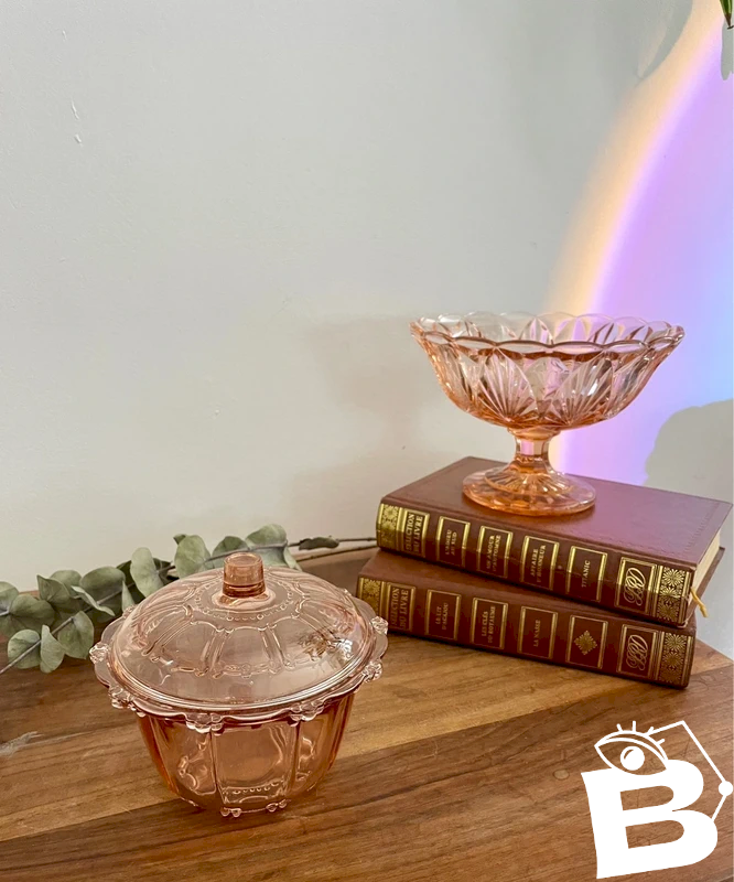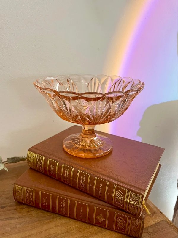 Bonbonnière et coupe sur pied en verre rose ? Deux jolies pièces pleines de charme, parfaites pour apporter une touche vintage et lumineuse dans votre maison ✨