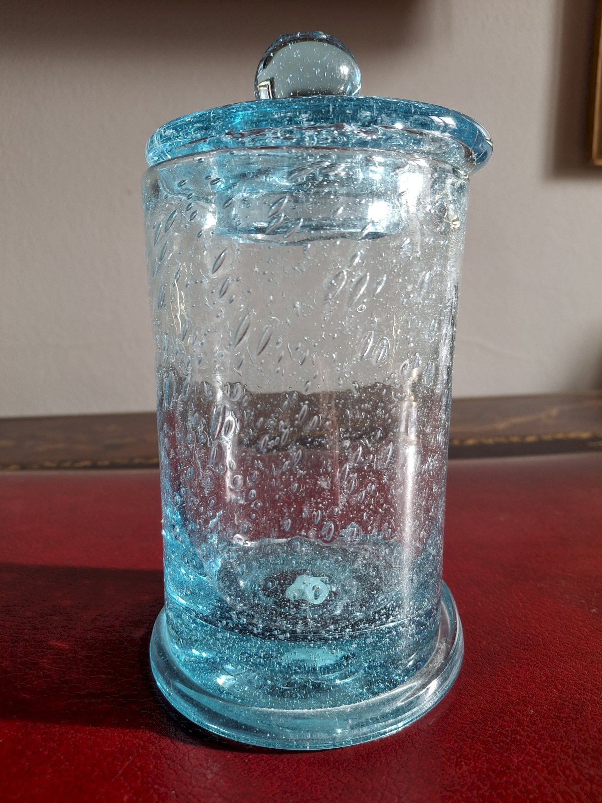 Bonbonnière pour enfants méritants en verre bullé de Biot, dit pot apothicaire avec son couvercle