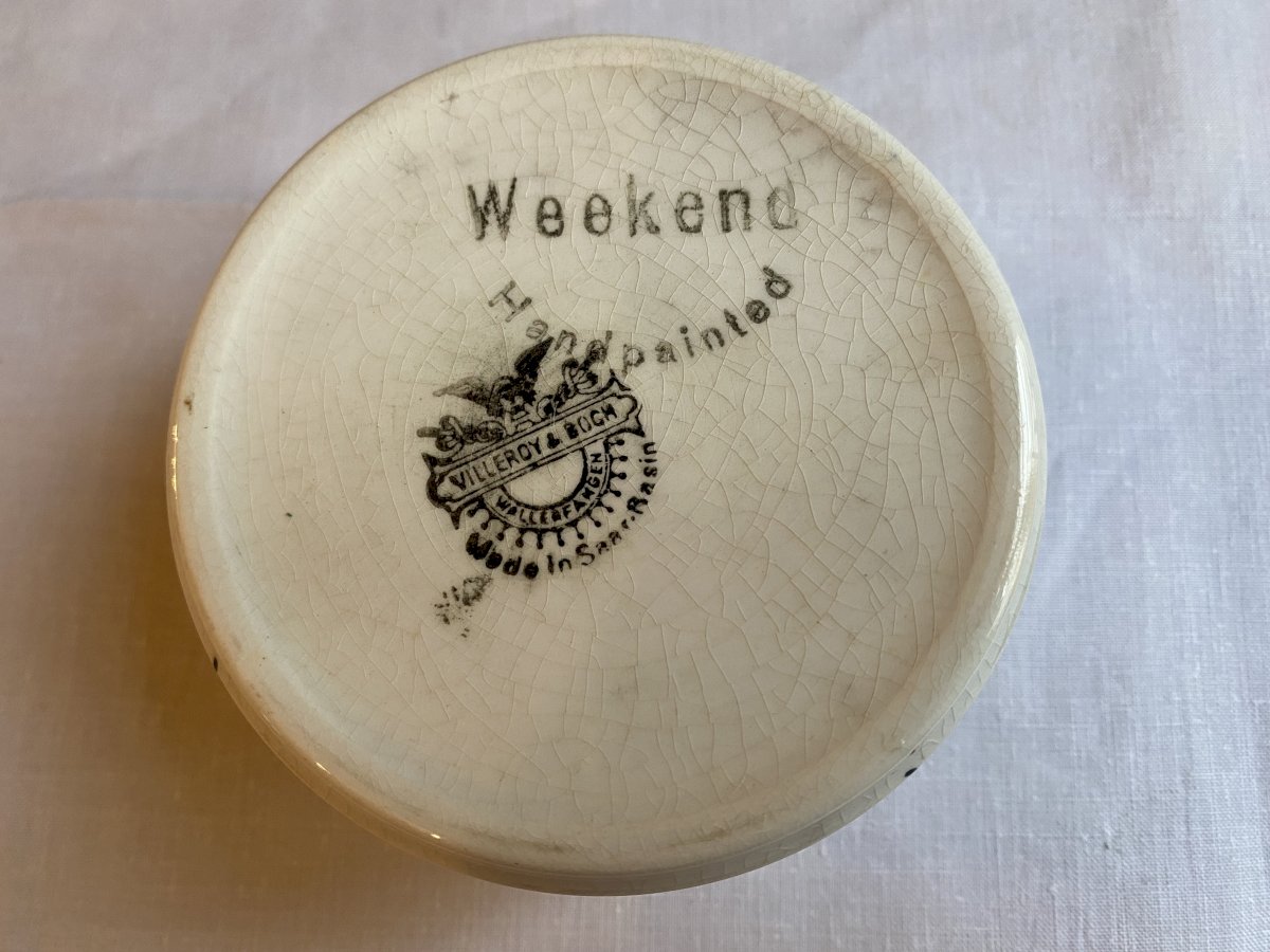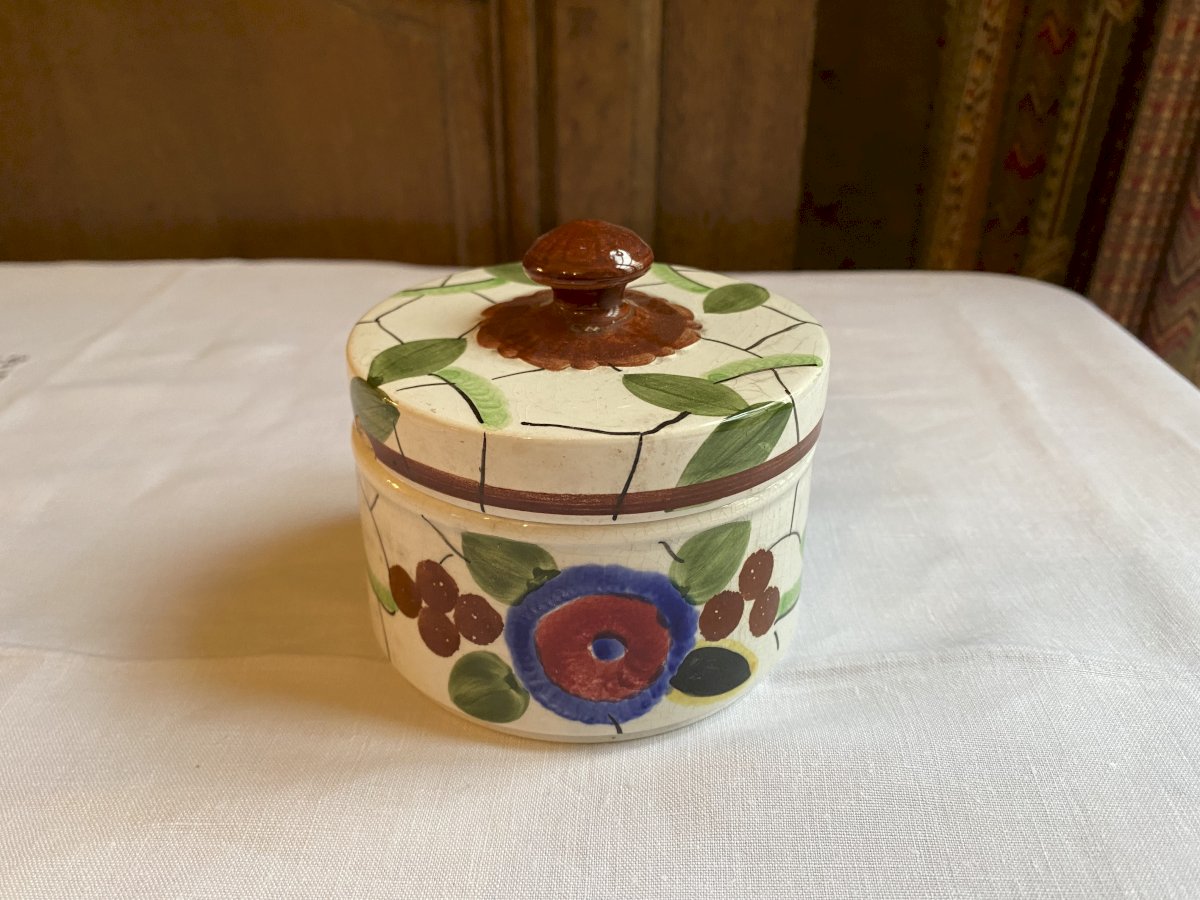 Bonbonnière Villeroy & Boch, fond beige, motifs fleurs & fruits.