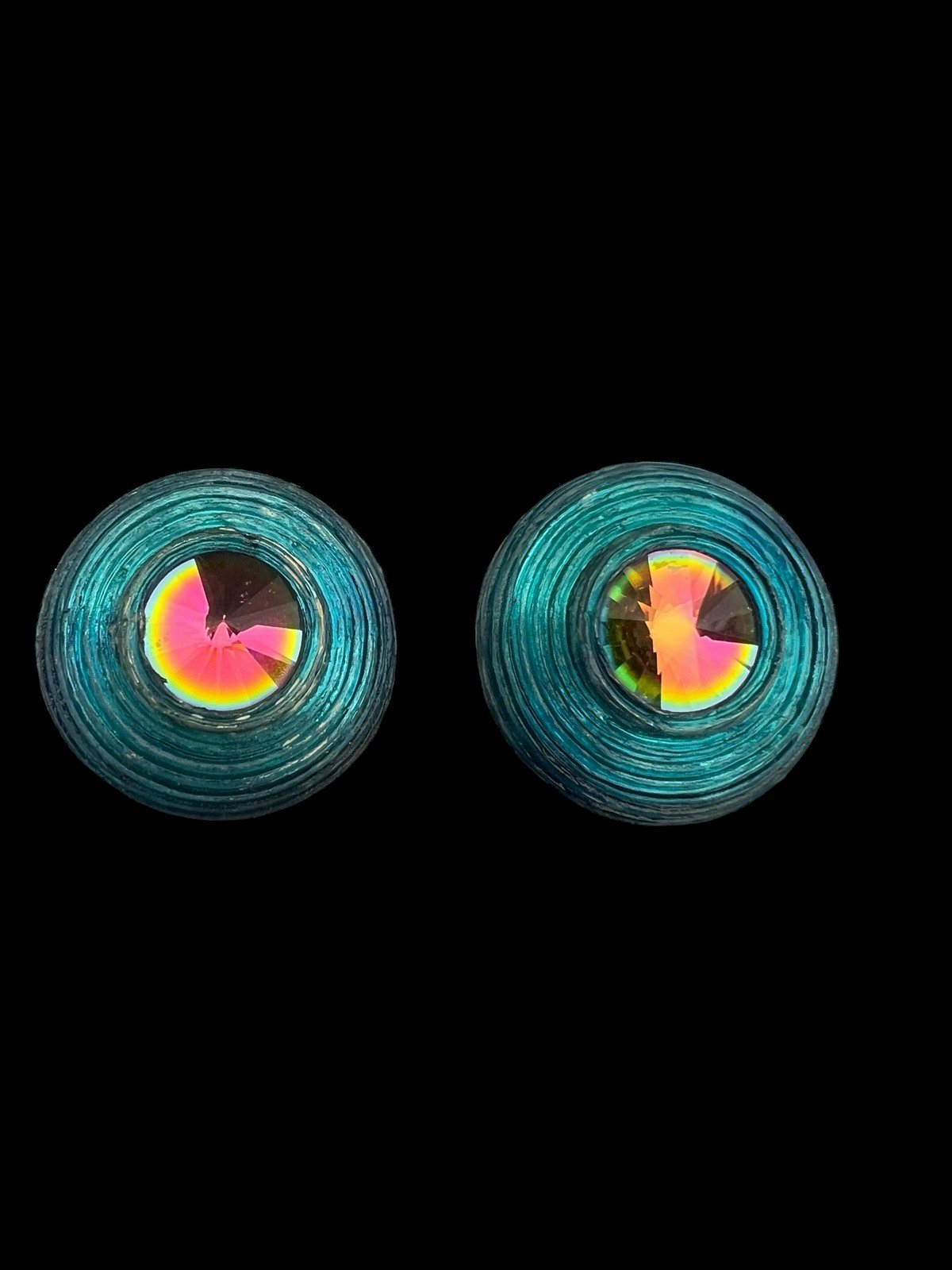 Boucle d’oreille clip vintage Monique Vedié Talossel 1960/1980 Collection. Sertie d’un strass multicolore type swarovski. Le système de clip est fonctionnel. Le diamètre environ 3,2 cm. État:Occasion: Objet ayant été porté. ...Occasion: Objet ayant été porté. les éventuelles imperfections. Pierre dominante:Swarovski Type:Clips Couleur dominante:Bleu Fermoir:Clips Matière:Talossel