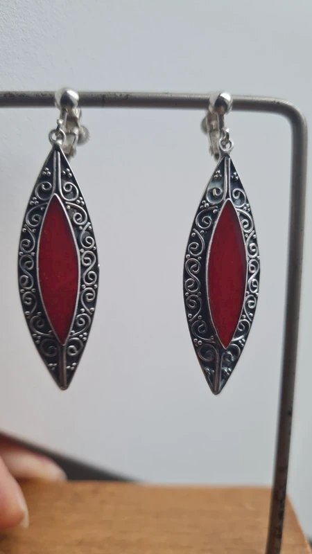 au dessus de 25€, merci de choisir comme transporteur si possible profitez-en pour acheter en lot 5 articles -10% 10 articles - 20% 20 articles -30% bien regarder les photos pour voir les imperfections Boucles d'oreilles pendantes en argent sterling 925 Dimensions hauteur : 5 cm largeur : 1,4 cm#bouclesdoreilles#clips#bijoux#cadeau#argent#bouclesdoreillescorail#corail#clips#clipscorail...