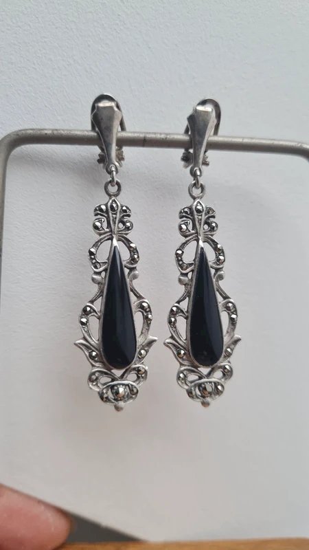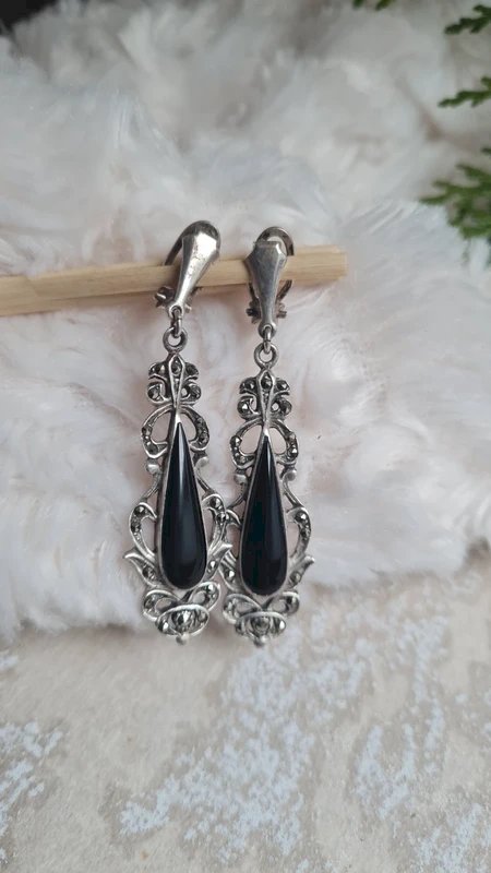 au dessus de 25€, merci de choisir comme transporteur si possible profitez-en pour acheter en lot 5 articles -10% 10 articles - 20% 20 articles -30% bien regarder les photos pour voir les imperfections Boucles d'oreilles pendantes en argent sterling 925 Dimensions hauteur : 5,7 cm largeur : 1,6 cm#bouclesdoreilles#clips#bijoux#cadeau#argent#bouclesdoreillesonyx#marcassites#onyx#clips#clipsonyx...
