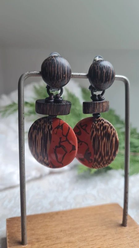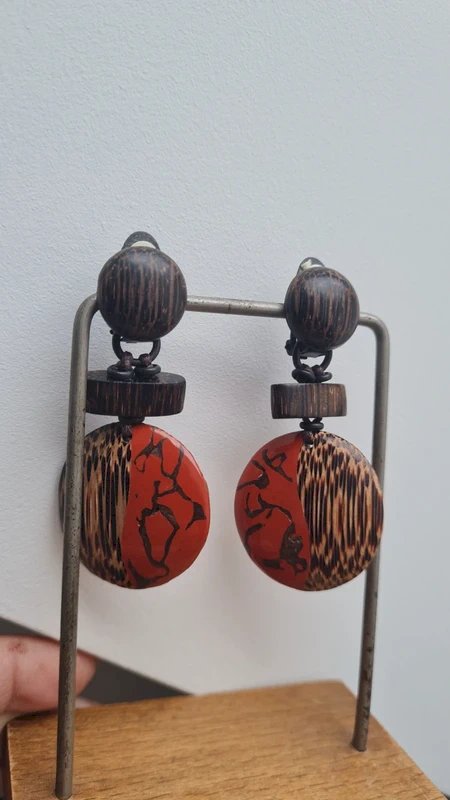 au dessus de 25€, merci de choisir comme transporteur si possible profitez-en pour acheter en lot 5 articles -10% 10 articles - 20% 20 articles -30% bien regarder les photos pour voir les imperfections Boucles d'oreilles pendantes signées Nature Dimensions hauteur : 6,5 cm largeur : 3 cm#bouclesdoreilles#clips#bijoux#cadeau#nature#bouclesdoreillesnature#bois#clips#clipsnature