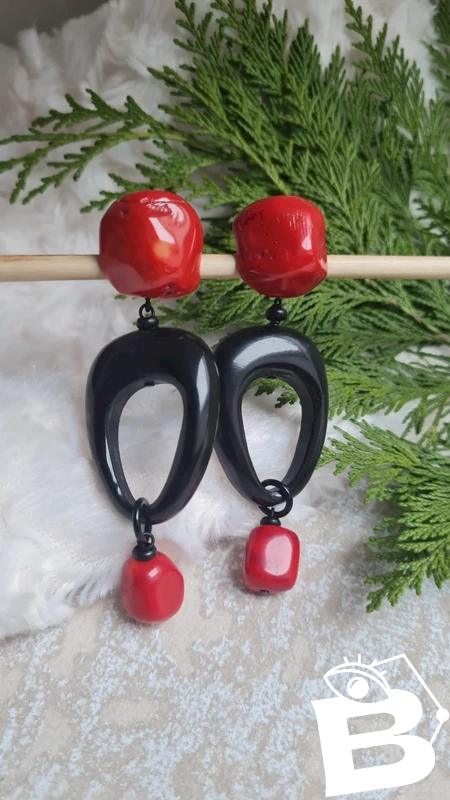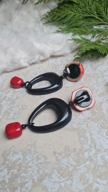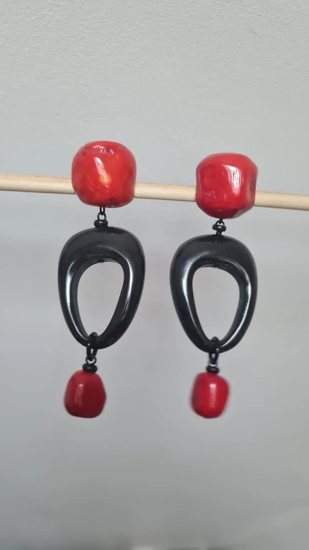Boucles doreilles - clips en corail et ébène signées Nature