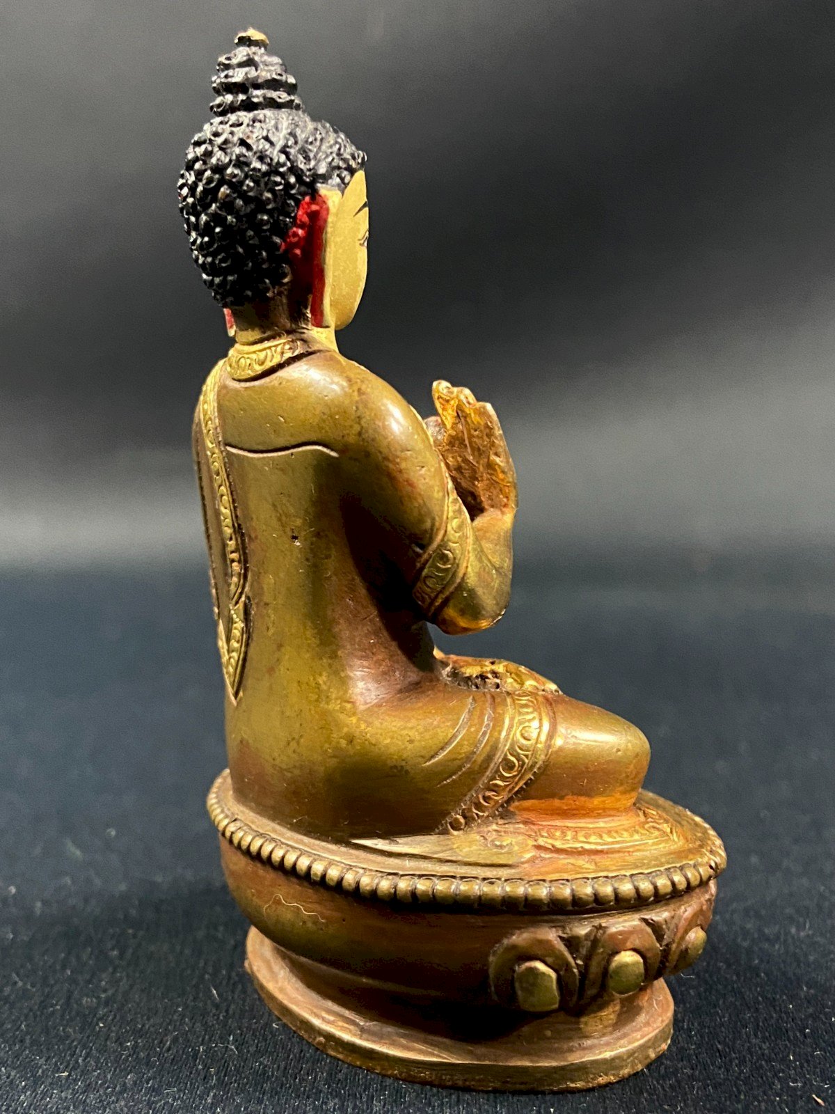 Sujet en bronze moulé au Bouddha assis en méditation dans la posture d'enseignement, Dharmachakra Mudra Népal, Tibet Epoque XXe Dimensions max : Hauteur 8,3 x 5,6 x 3,8 cm Poids : 205 grammes Envoi ultra sécurisé à destination du monde entier Retrait des commandes possible sur rendez-vous, 7 rue Notre-Dame 18000 Bourges. Possibilité de groupage au sein d'un même colis : merci de bien vouloir me contacter préalablement afin que je puisse calculer vos frais de transport optimisés. Authenticité:Original Type:Figurine, Statue Origine:Népal Pays d'origine:Népal Matière:Bronze