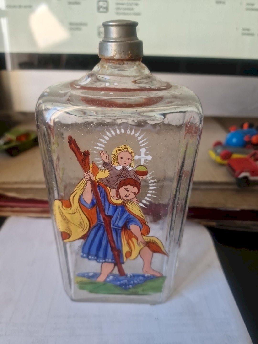 Bouteille en Verre Peinte à la Main Carafe Antique