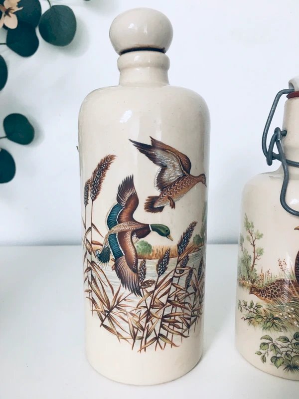 2 bouteilles décoratives en céramique WTK vintage Fabrication allemande Très bien conservées Hauteurs 23 et 19 cm Pour deux articles achetés dans mon dressing, le troisième est offert ☺️( le moins cher des trois …) Me contacter pour l’achat d’un lot Réduction de frais de port possible pour les vases,les assiettes, les bols #retro #vintage #vaissellevintage #vaisselleancienne #vaisselleanglaise #artdeco #annees70 #boheme...
