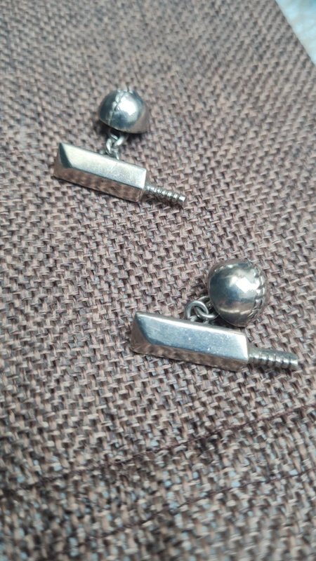 Boutons de manchette - boule de Cricket - en argent 925 Argenté