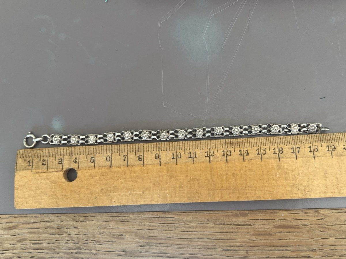 Bracelet argent florale fin 19e poinçon travail français. Dimension du bracelet environ 19 cm de long sur 0,6 cm de large. Point total environ 8,8 g Poinçonner au sanglier sur l’anneau Le fermoir est fonctionnel Bon état de General ancien État:Occasion: Objet ayant été porté. ...Occasion: Objet ayant été porté. les éventuelles imperfections. Métal:Argent fin Marque:1900 Pureté métal:925 parties pour 1000 Style:Chaine