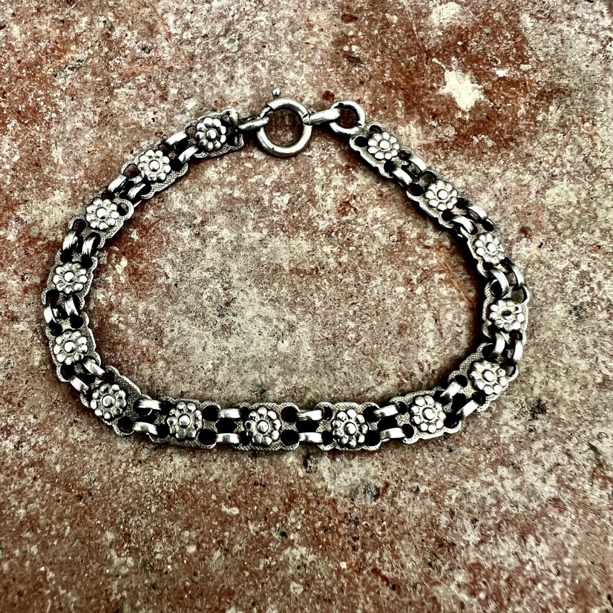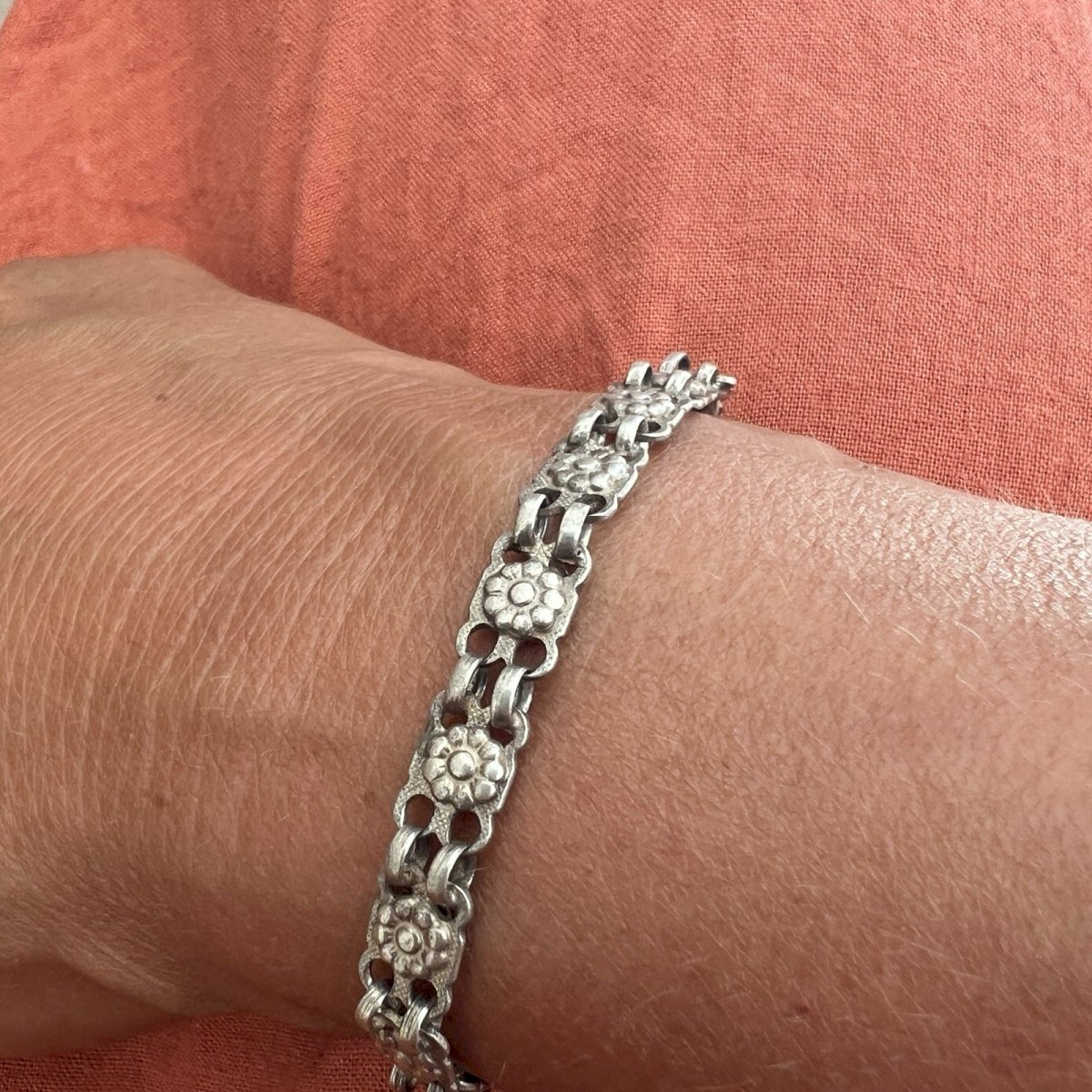 Bracelet argent florale fin 19e poinçon travail français-ancien-Vintage-charme