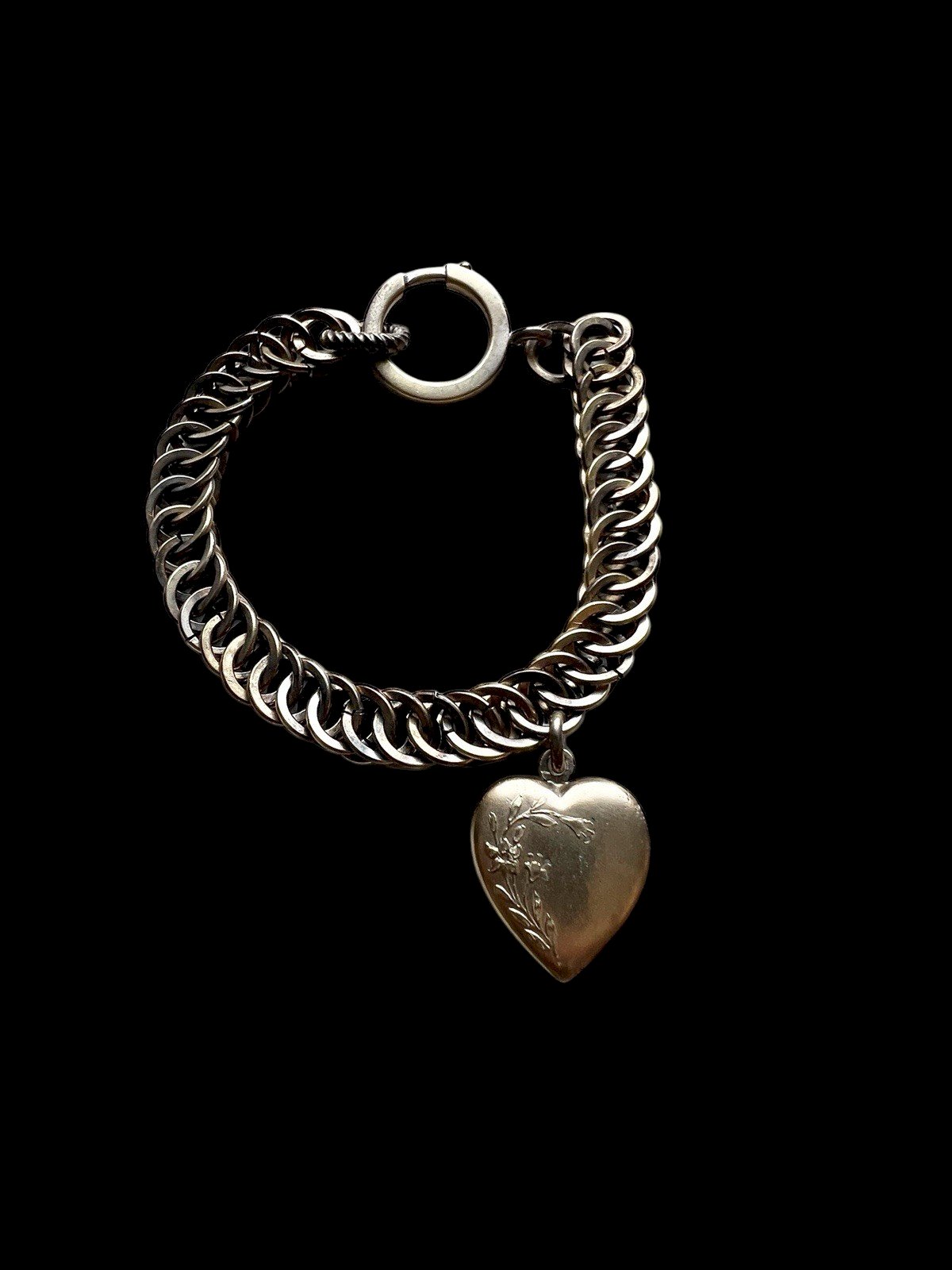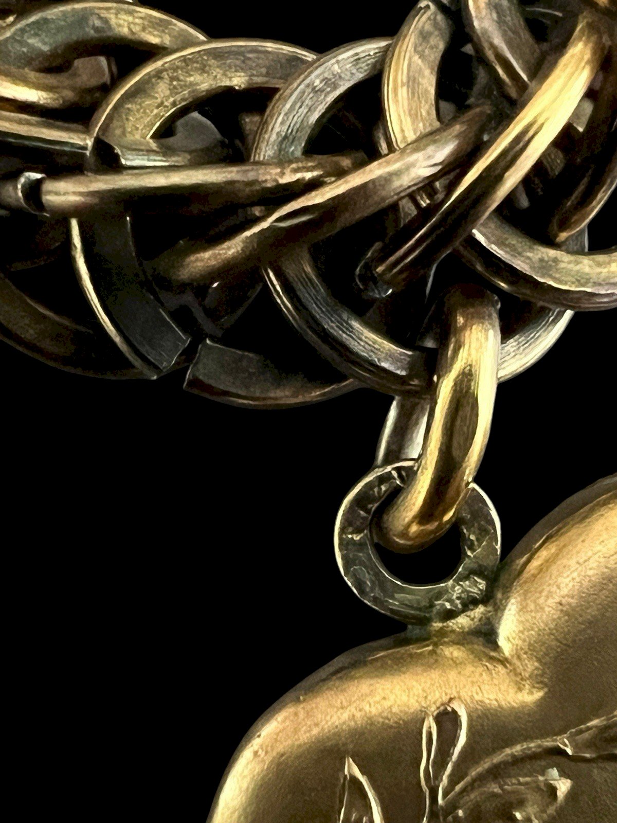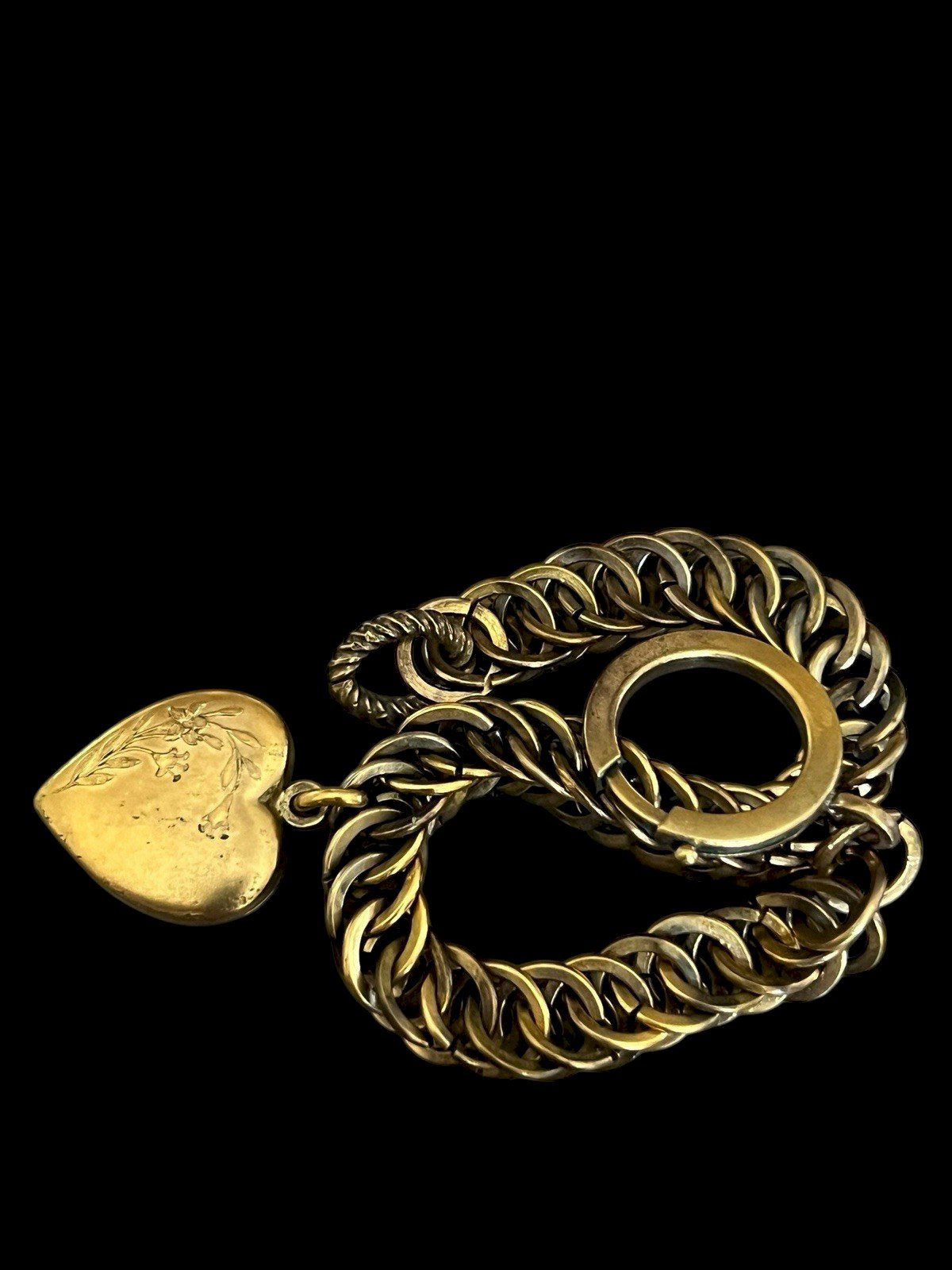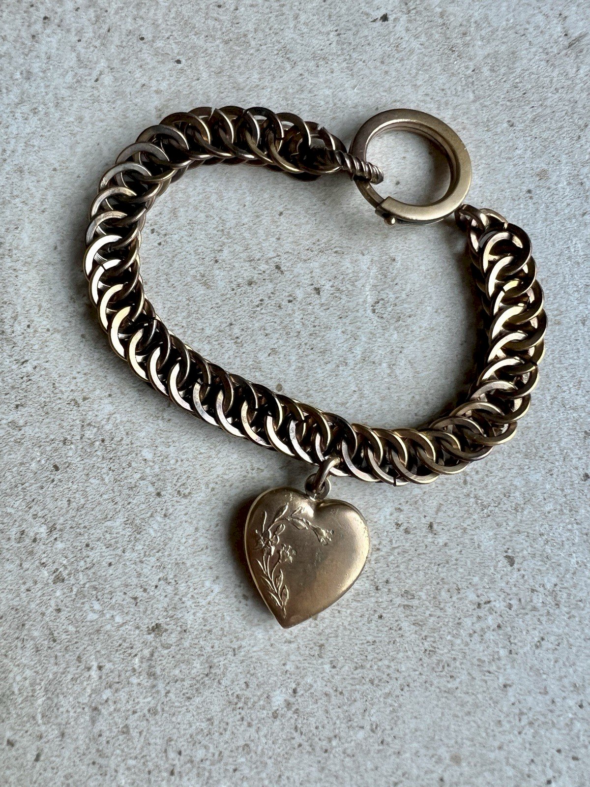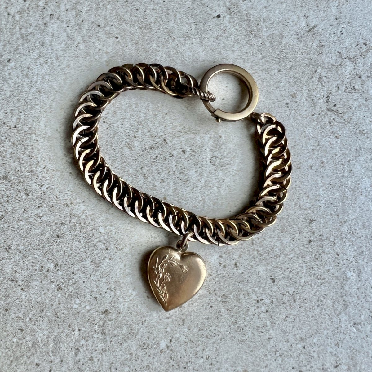 Bracelet Gourmette Breloque cœur 1900 Oria plaqué or Art Nouveau Charme
