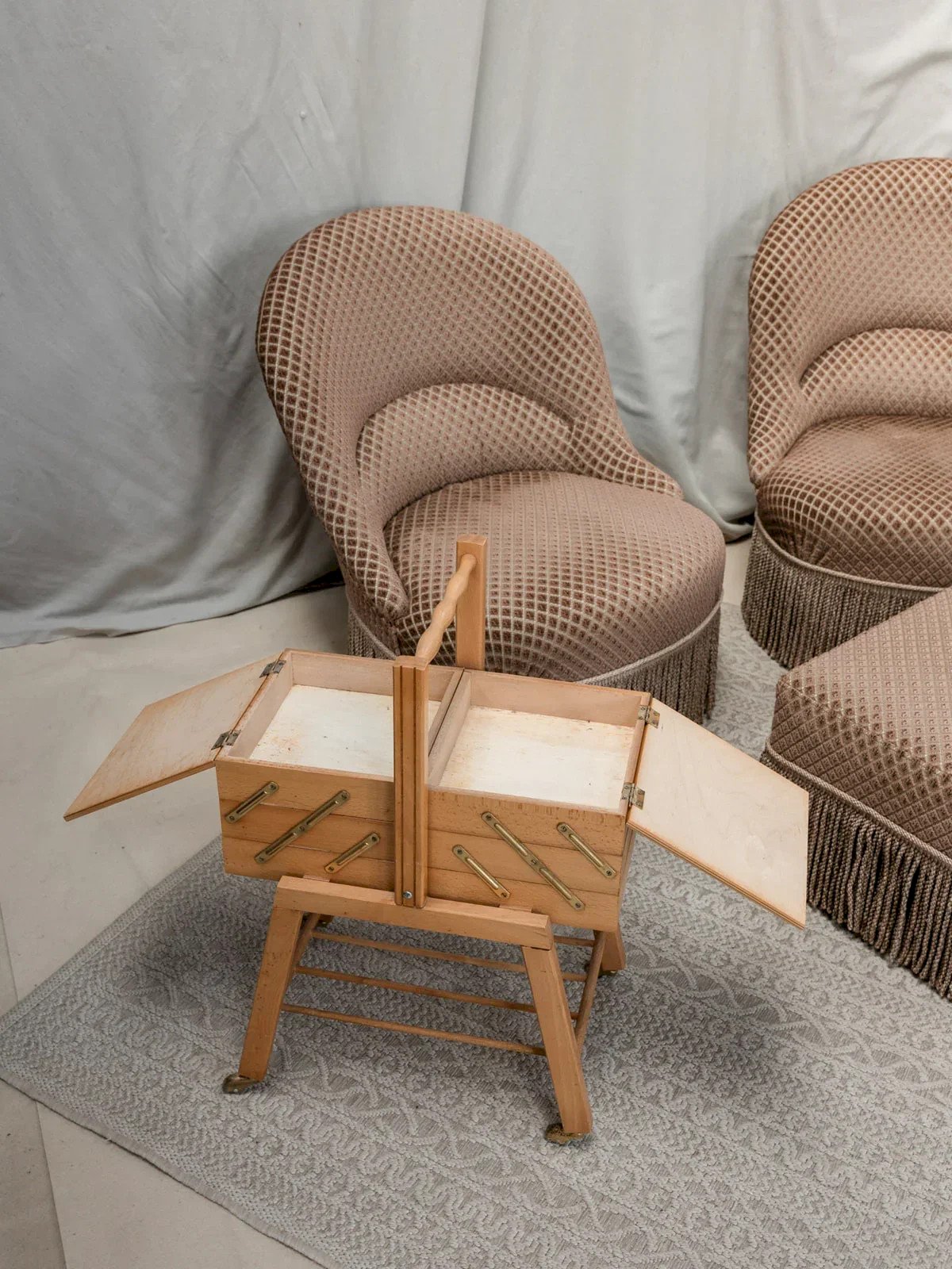 Cette jolie travailleuse en bois clair est aussi pratique que pleine de charme. Montée sur roulettes, elle se déplace facilement au gré de vos envies. On aime son look intemporel et ses compartiments malins qui offrent un bel espace de rangement. Que ce soit pour y glisser du petit matériel créatif ou des objets du quotidien, elle trouve facilement sa place dans n’importe quelle pièce de la maison. Longueur : 45 à 127 cm Hauteur : 64 cm Profondeur : 30 cm Hauteur de la niche : 21 cm État:Occasion: Objet ayant été utilisé. Objet présentant quelques marques d'usure superficielle, ...Occasion: Objet ayant été utilisé. Objet présentant quelques marques d'usure superficielle, entièrement opérationnel et fonctionnant correctement. Il peut s'agir d'un modèle de démonstration ou d'un objet retourné en magasin après une courte période d'utilisation. les éventuelles imperfections. Marque:Debongout Type:Produit chiné Matériau:Bois Style:Campagne Personnalisé:Travailleuses