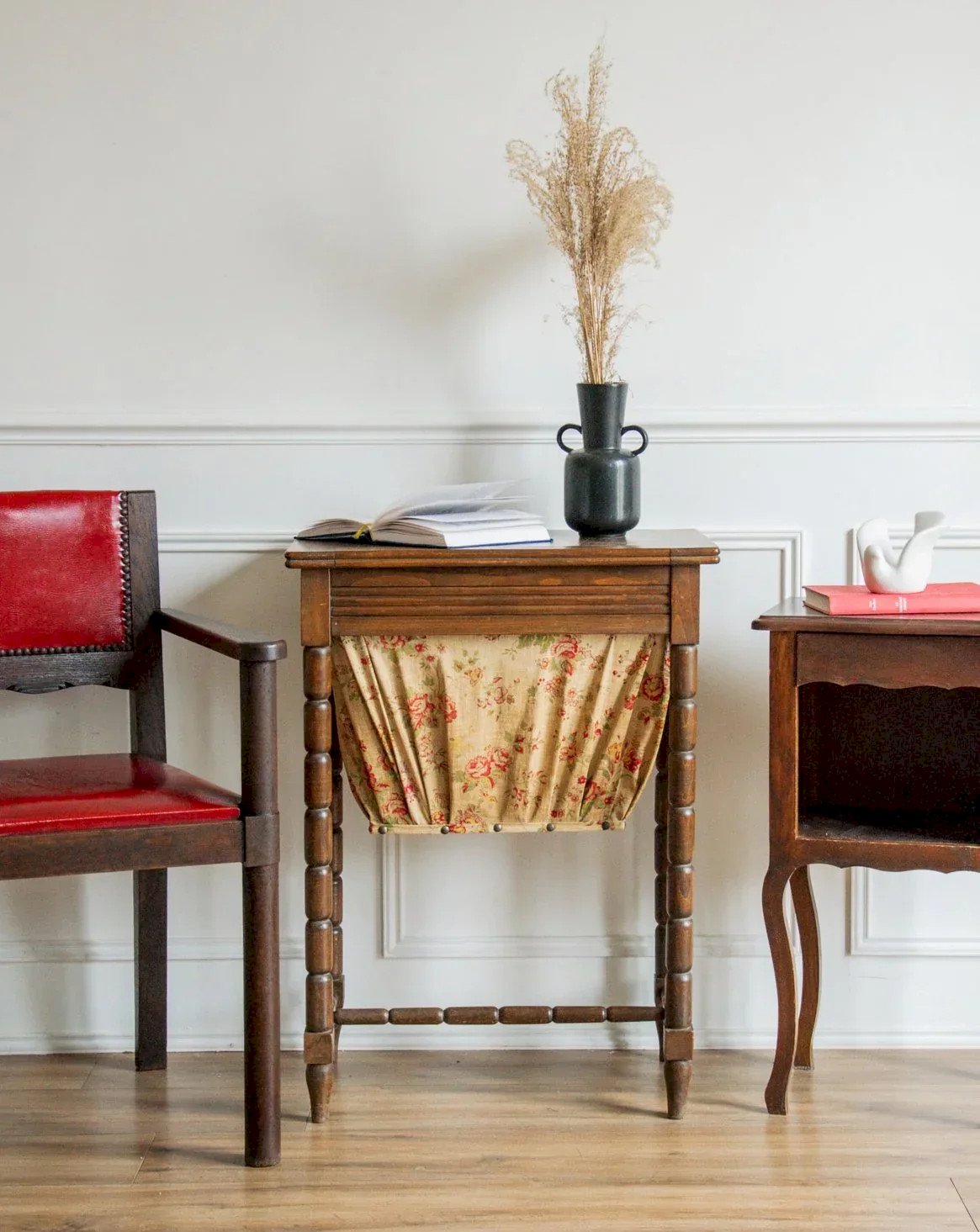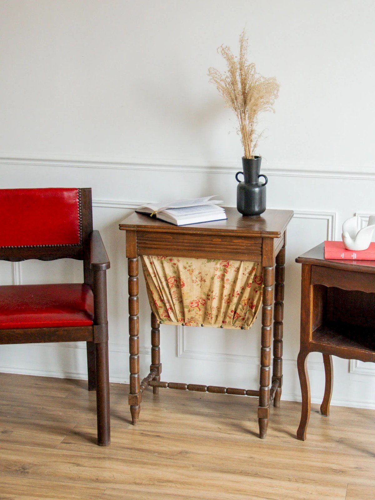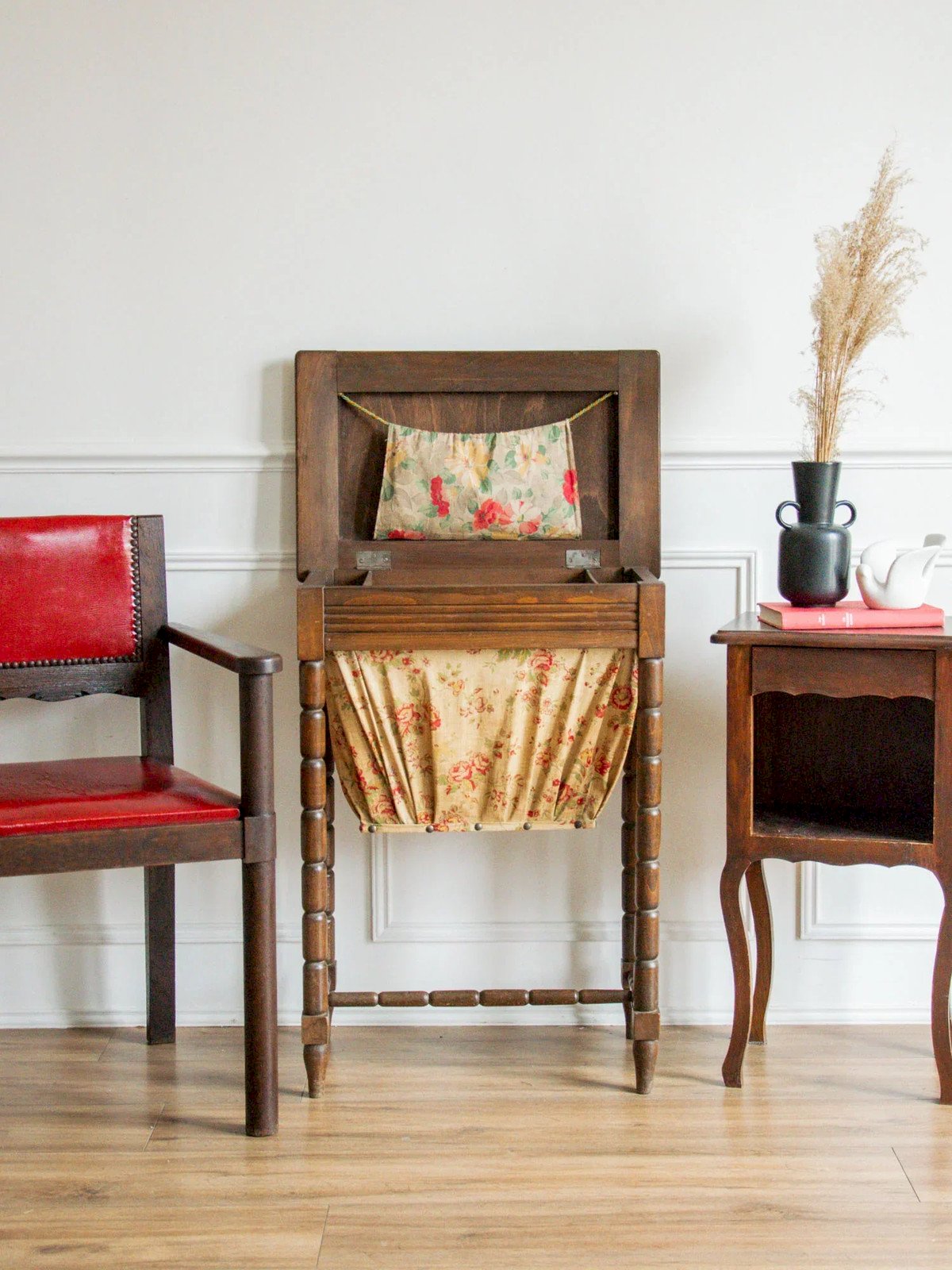 Ajoutez une touche de charme à votre intérieur avec cette travailleuse en bois ornée d'un tissu floral délicat. Pratique et élégante, elle offre un espace idéal pour ranger vos accessoires ou vos projets de couture. Son design raffiné et ses finitions minutieuses en font un élément décoratif incontournable, parfait pour les amateurs de style vintage. Offrez-vous un morceau de douceur et de fonctionnalité avec cette pièce unique qui illuminera votre espace de vie. Longueur : 55 cm Largeur : 35 cm Hauteur : 75 cm Hauteur totale : 104 cm Hauteur de la niche : 35 cm État:Occasion: Objet ayant été utilisé. Objet présentant quelques marques d'usure superficielle, ...Occasion: Objet ayant été utilisé. Objet présentant quelques marques d'usure superficielle, entièrement opérationnel et fonctionnant correctement. Il peut s'agir d'un modèle de démonstration ou d'un objet retourné en magasin après une courte période d'utilisation. les éventuelles imperfections. Marque:Debongout Type:Produit chiné Matériau:Bois Style:Campagne Personnalisé:Travailleuses