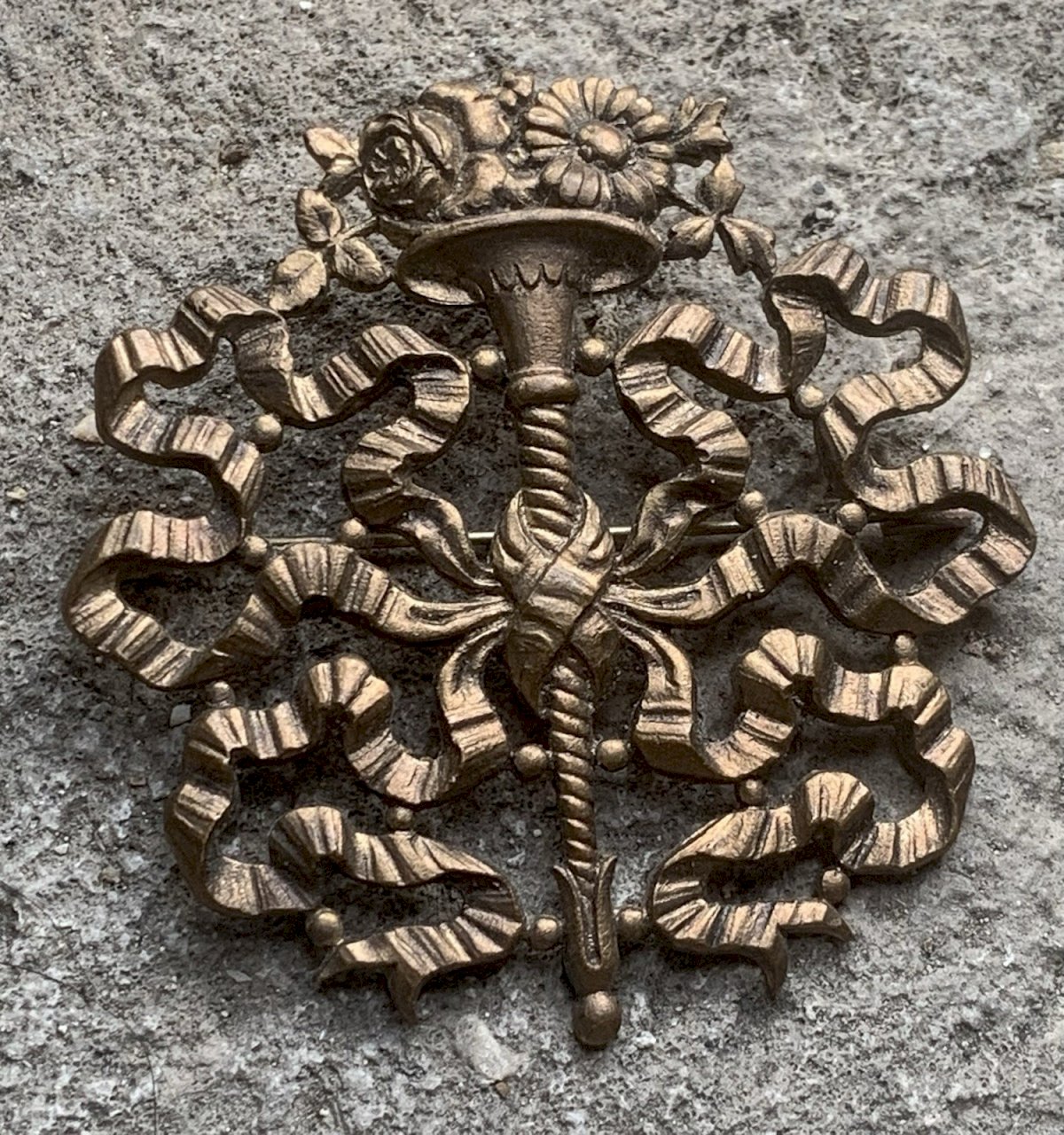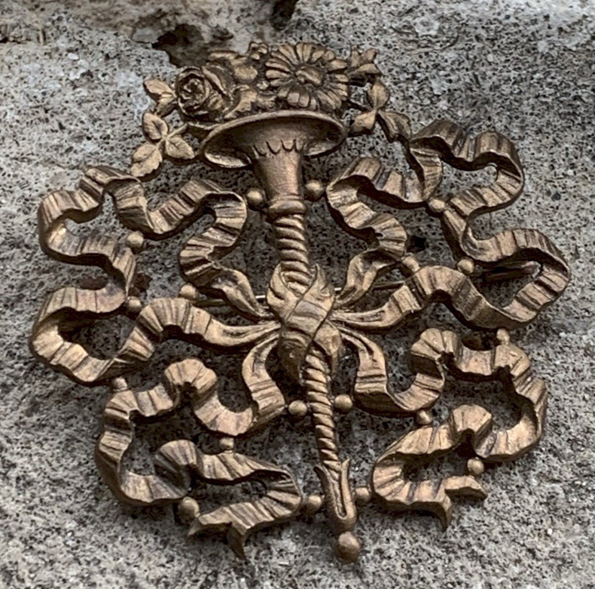 broche ancienne décor floral avec ruban période XIXe Nap III belle époque