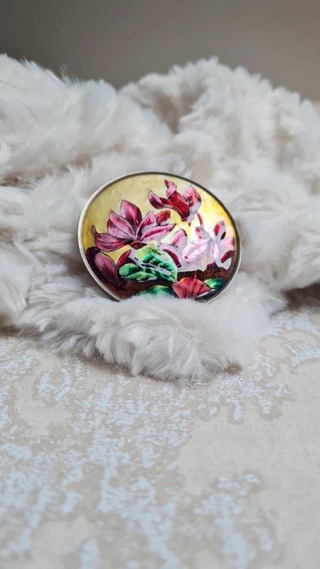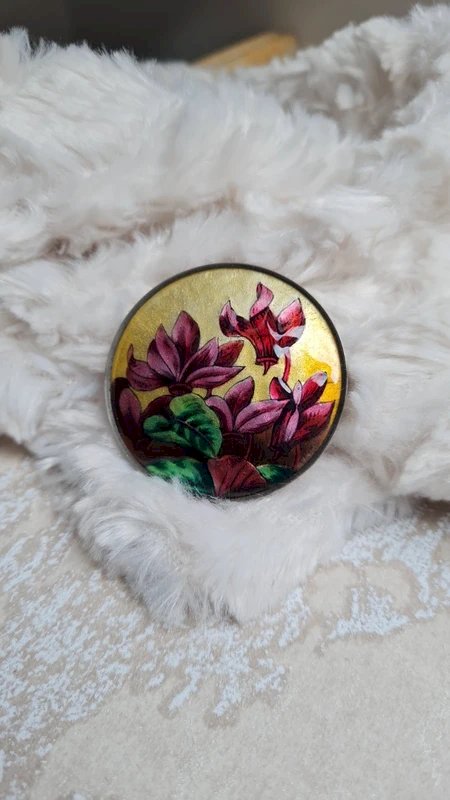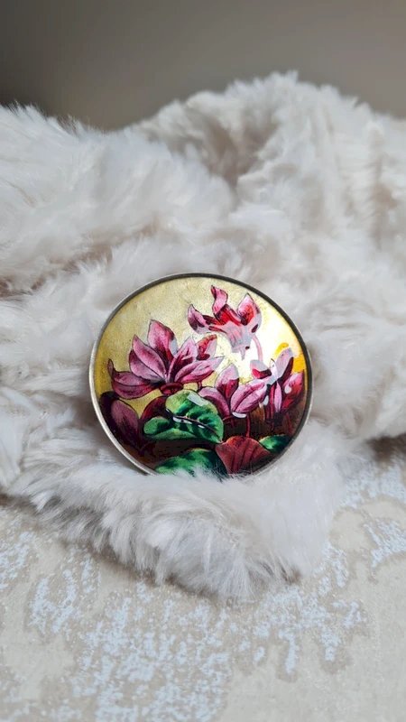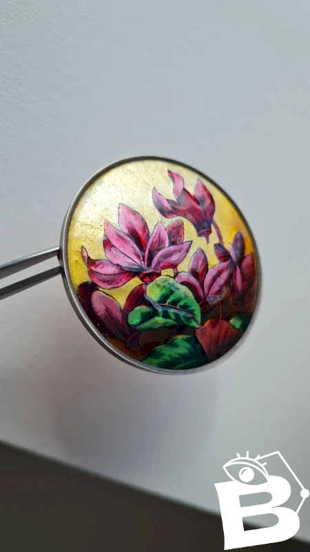 Broche ancienne émaux de limoges en argent fleurs cyclamen Bardonnaud années 1900