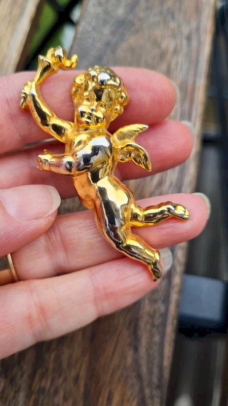 Broche Ange - chérubin - broche Marie Puisais- broche vintage doré Métal