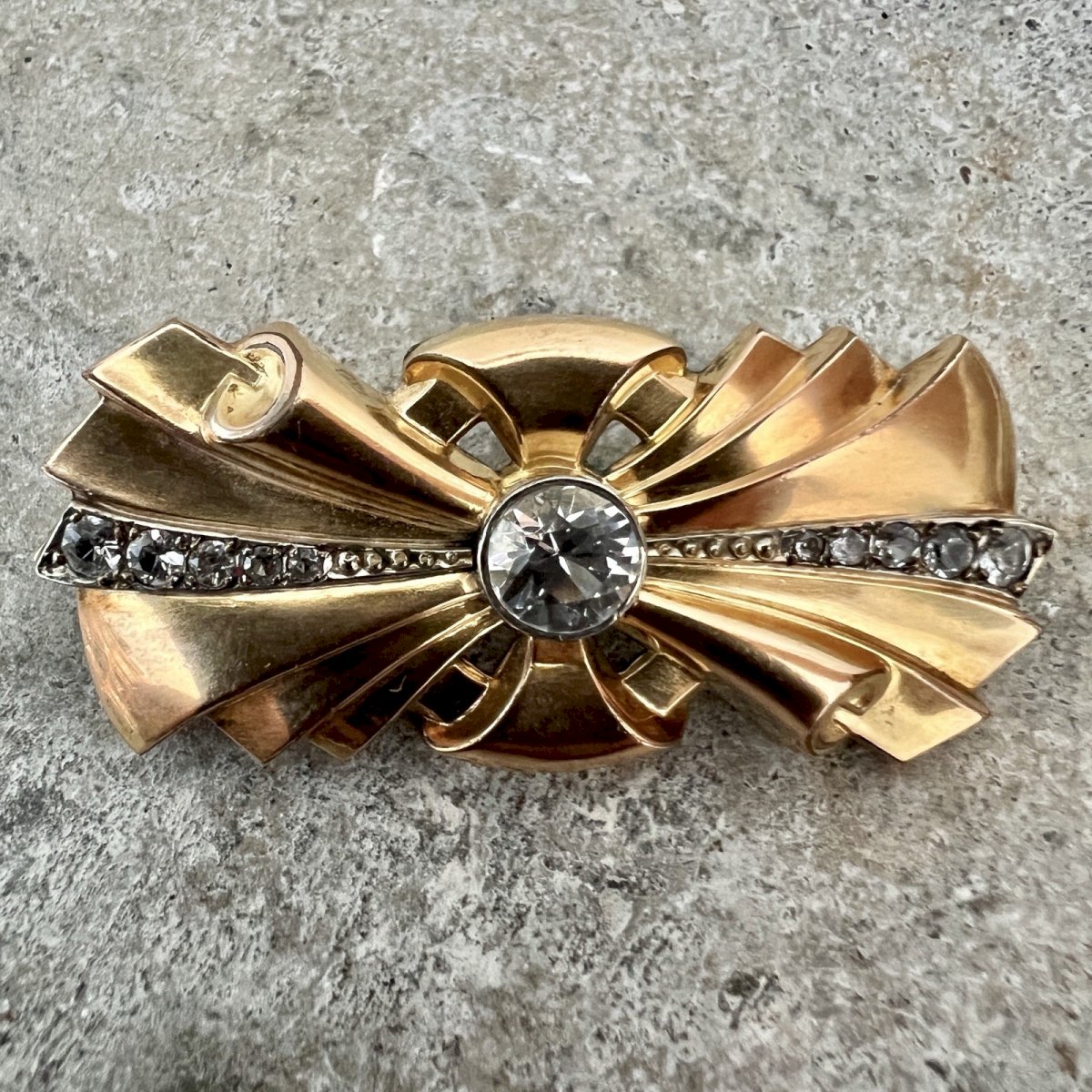 Broche plaqué or Estampillé Fix Art déco 1925 ancien vintage bijoux d’époque
