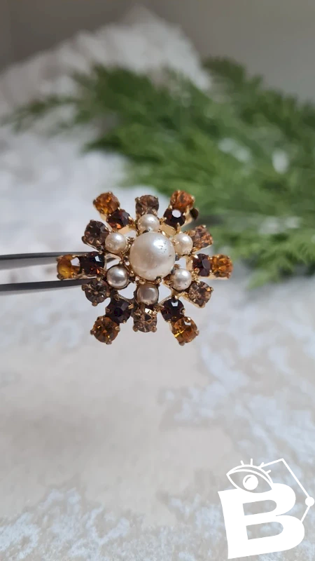 Broche vintage avec strass champagne