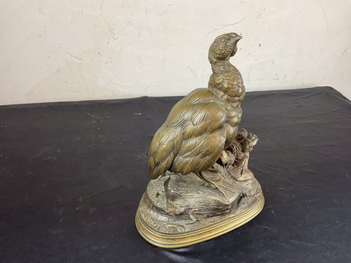Bronze animalier de Ferdinand Pautrot (1832-1874) Perdrix époque XIXème Hauteur : 24,5 cm  Largeur : 19 cm Poids : 2830g Authenticité:Original Type:Sculpture Période:XIXème et avant Matière:Bronze Dimension (cm):De 31 à 50 Thème:Animaux
