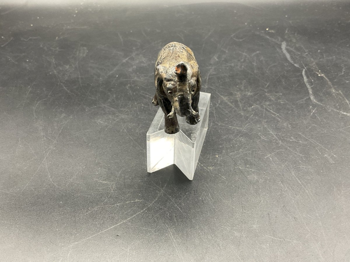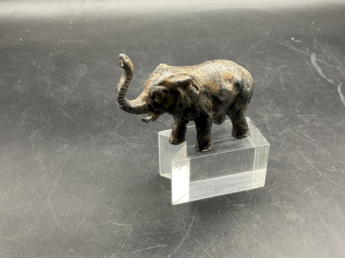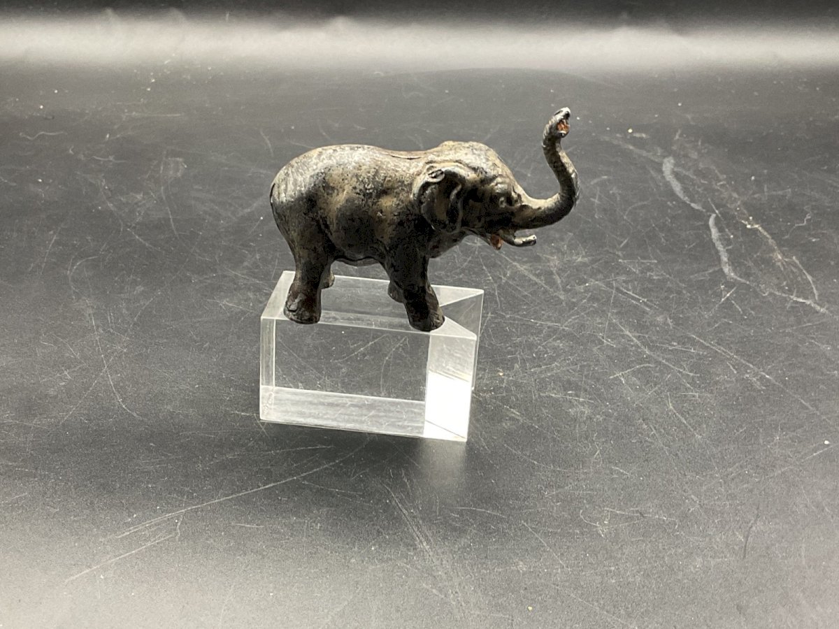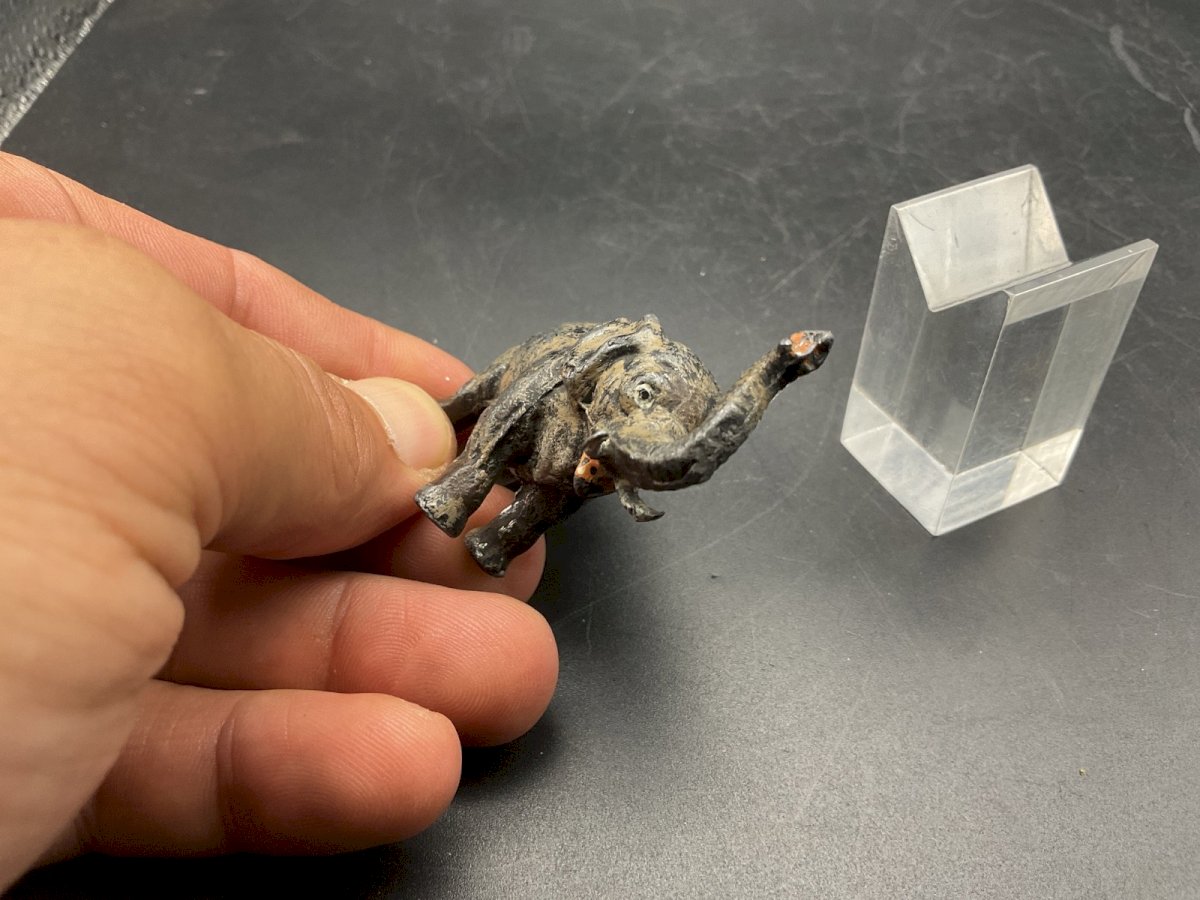bronze de Vienne en polychrome  ( dlg Dans Le Goût)Franz Bergmann ,  Éléphant  Plomb de Nuremberg Hauteur : 48mm Longueur :64mm Authenticité:Original Type:calendrier perpetuel Origine:Autriche Sous-type:Singe Matière:plomb Style:Napoléon III