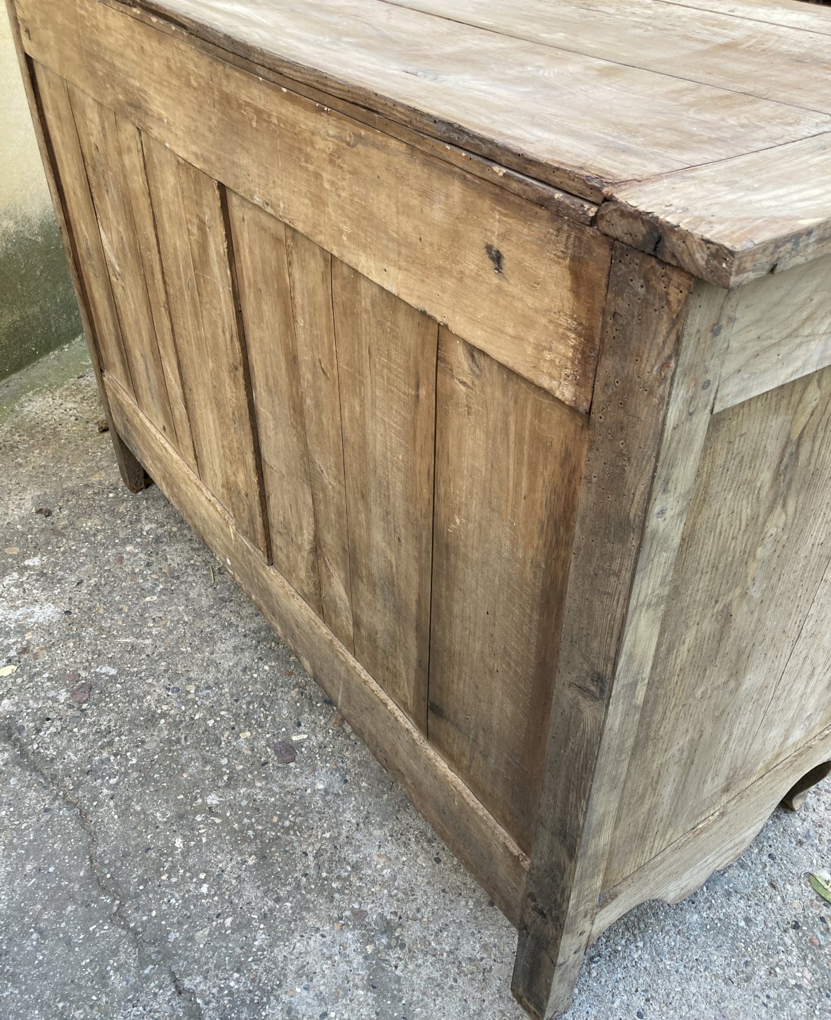 Buffet ancien en orme - Deux portes trois tiroirs - aspect brut, décapé, , très robuste, l'orme était un matériau de premier choix pour les menuisiers, il offre motifs à nul autre pareil réservé à des meuble d'exception. L141,5 x H58 x P99,5. La partie de stockage en bas mesure 33cm de haut, la partie supérieure mesure 24cm de haut (jusqu'à la traverse). Très bon état.