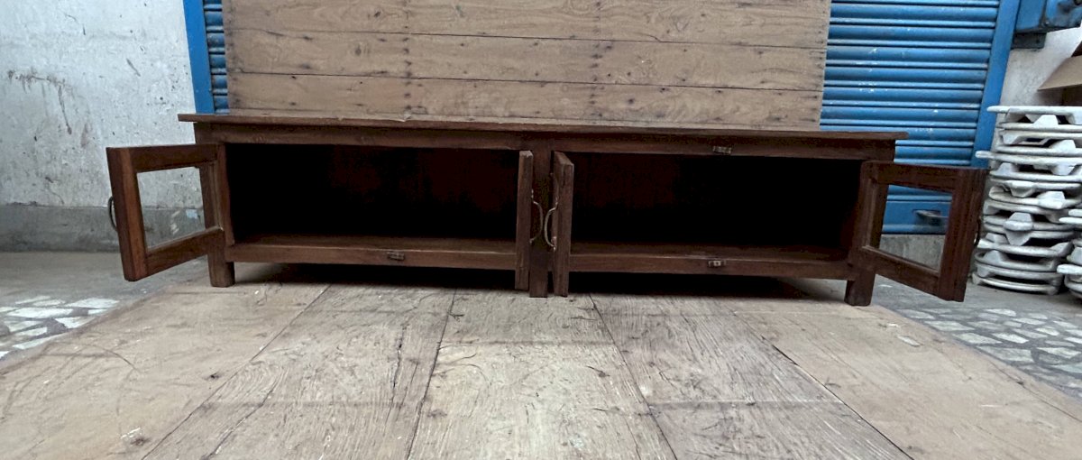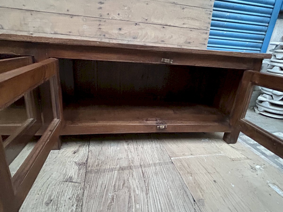 Buffet - meuble TV vitré en teck birman