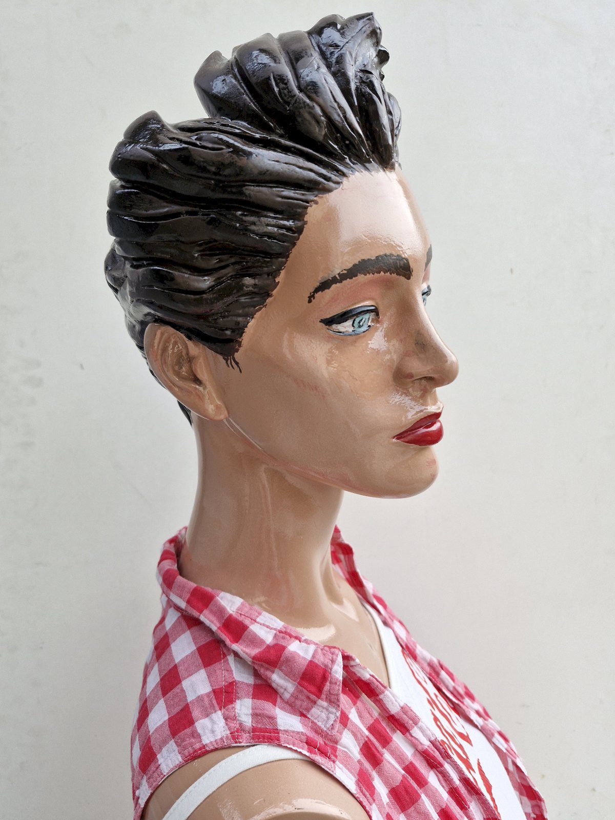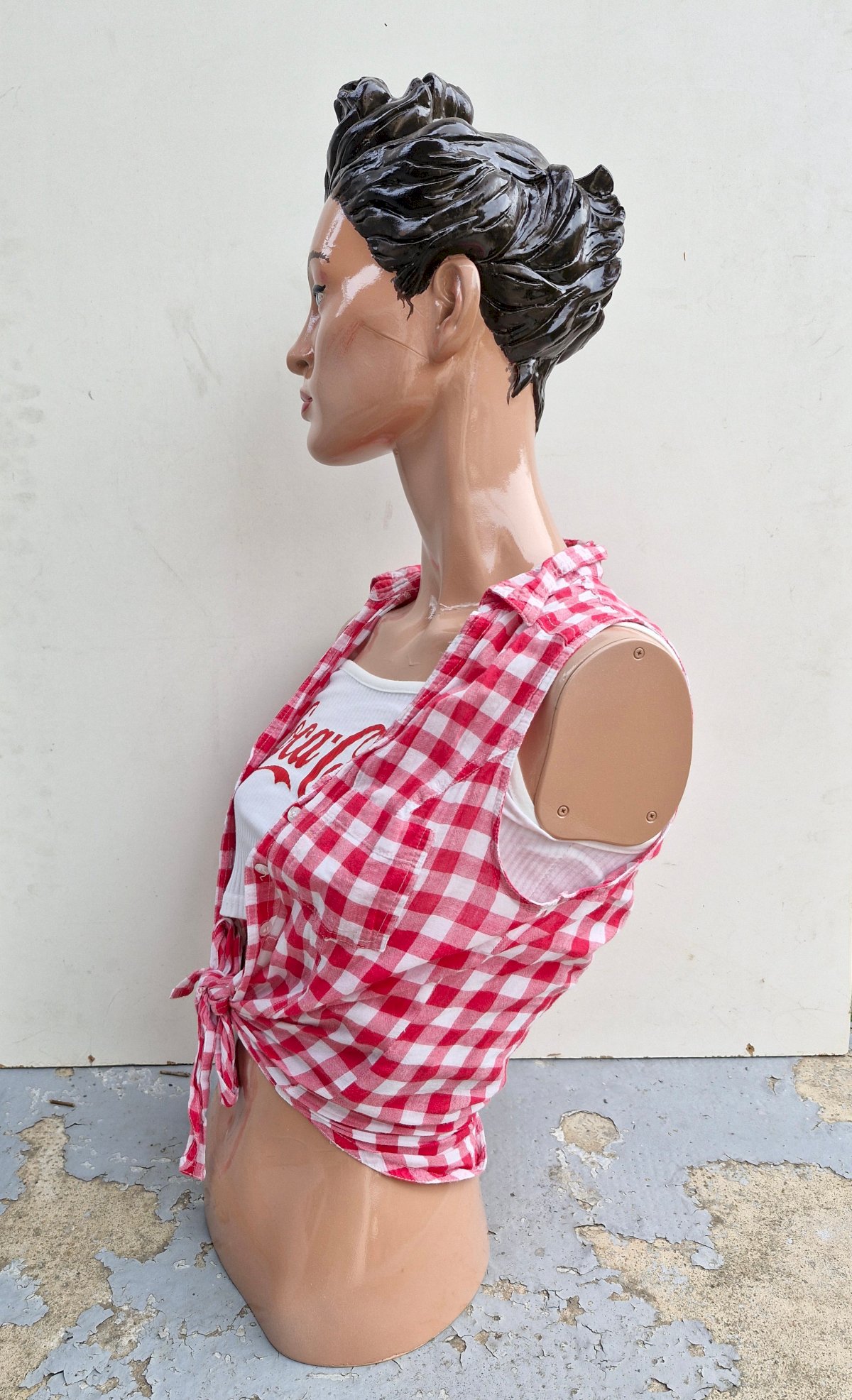 Buste mannequin de magasin vintage Blanc/Marron/Naturel/Rouge Résine/Tissu