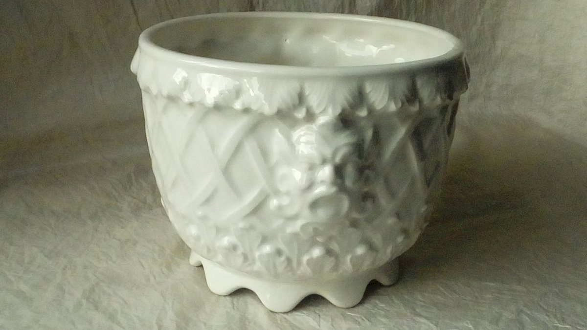 CHARMANT CACHE POT EN FAIENCE BLANCHE PAS DE SIGNATURE DECOR TÊTE DE CHIMÈRE STYLE CHARLES X HAUTEUR 14 cm DIAMETRE 16.50 cm PETIT ÉCLAT SUR LA BASE INVISIBLE UNE FOIS POSÉ VISIBLE SUR LES PHOTOS Pays d'origine:France