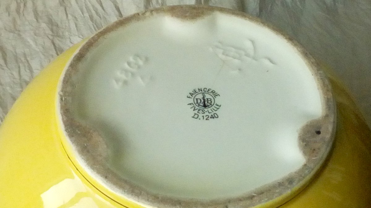 ANCIEN CACHE POT EN FAIENCE FIVES LILLE GUSTAVE DE BRUYN ÉPOQUE ART NOUVEAU FIN 19 ÈME DÉBUT 20 ÈME HAUTEUR 16 cm DIAMETRE 20 cm EN BON ÉTAT Pays d'origine:France