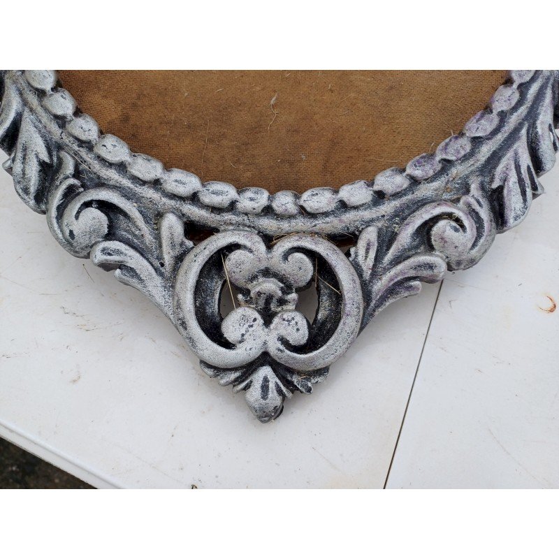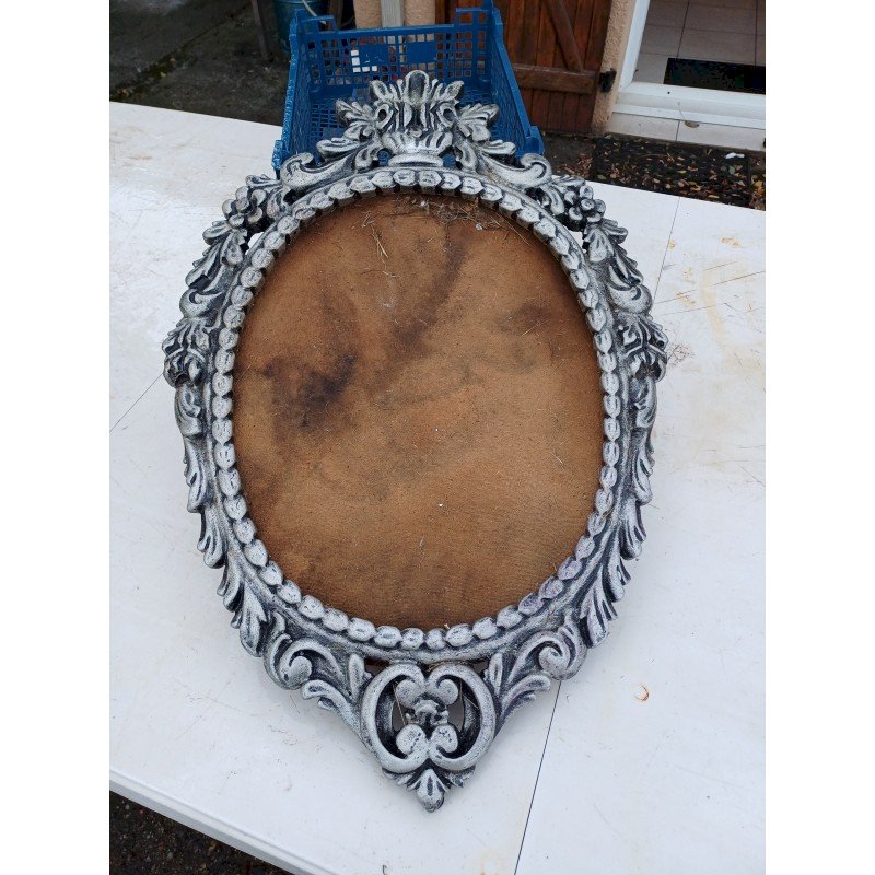 Cadre Bois Cérusé Vieux Gris , Ovale , Haut : 72 cm , long et larg : 48 cm sur 3 cm , poids : 3,2 Kg , trés bon ètat