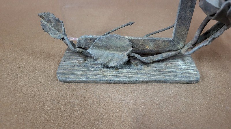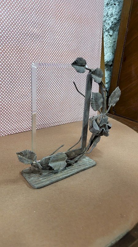 joli cadre en fer forgé et verre Art Déco il est en bon état il y a juste le porte cadre qui est rouillé et la vitre qui a de légères dentelures sur le bord mais pas visible en présentation il mesure 21 cm de large sur 20.5 cm de haut et 6 cm de profondeur la vitre mesure 11 cm de large sur 16 cm de haut Type:Objet de vitrine, Décoratif Période:Art Déco Sous-type:Cadre Matière:VERRE ET FER FORGE