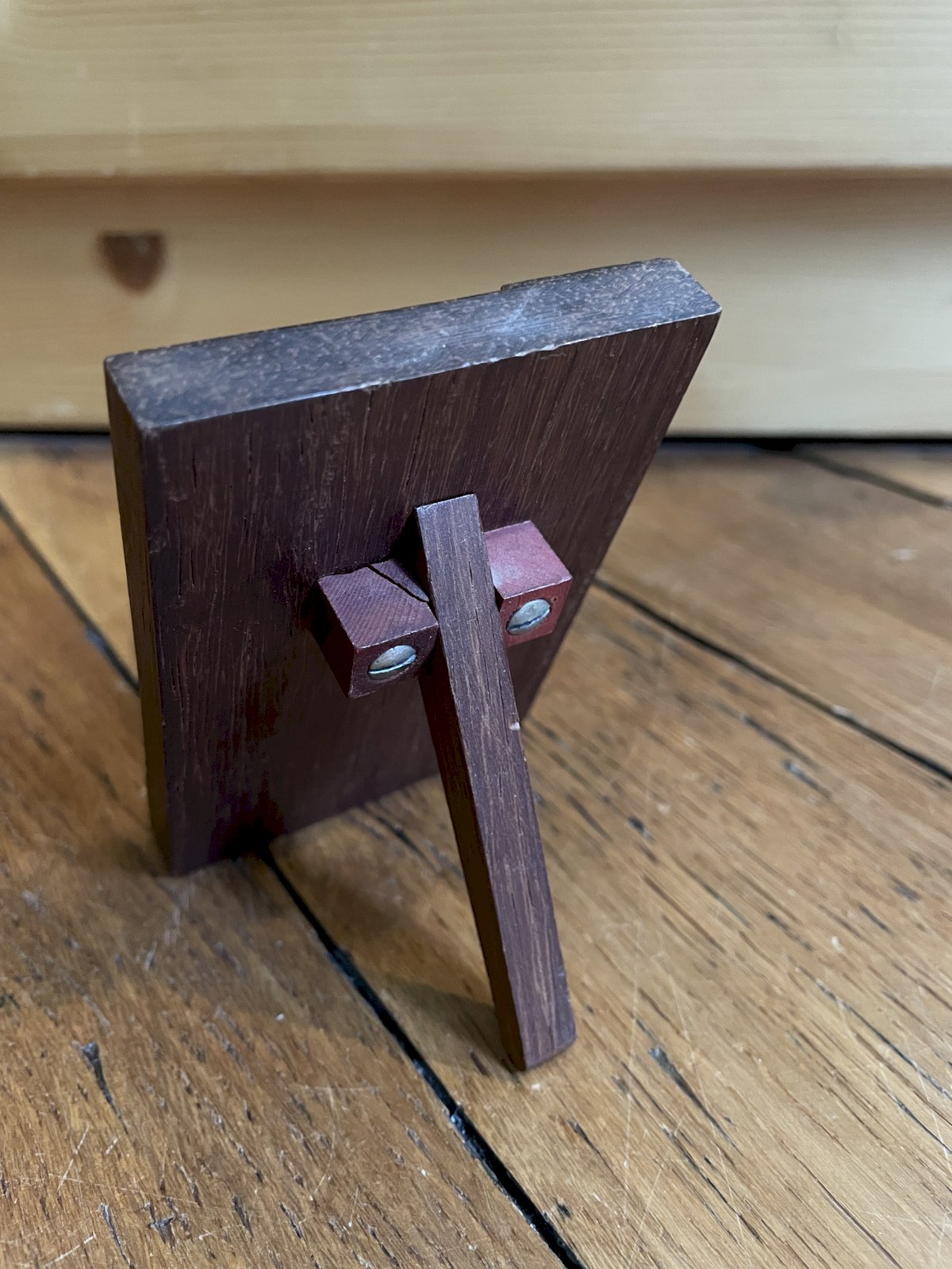 -SOUVENIR de LOURDES Plaque argentée JEANNE D'ARC sur Bois signé AIRAC VITRINE D