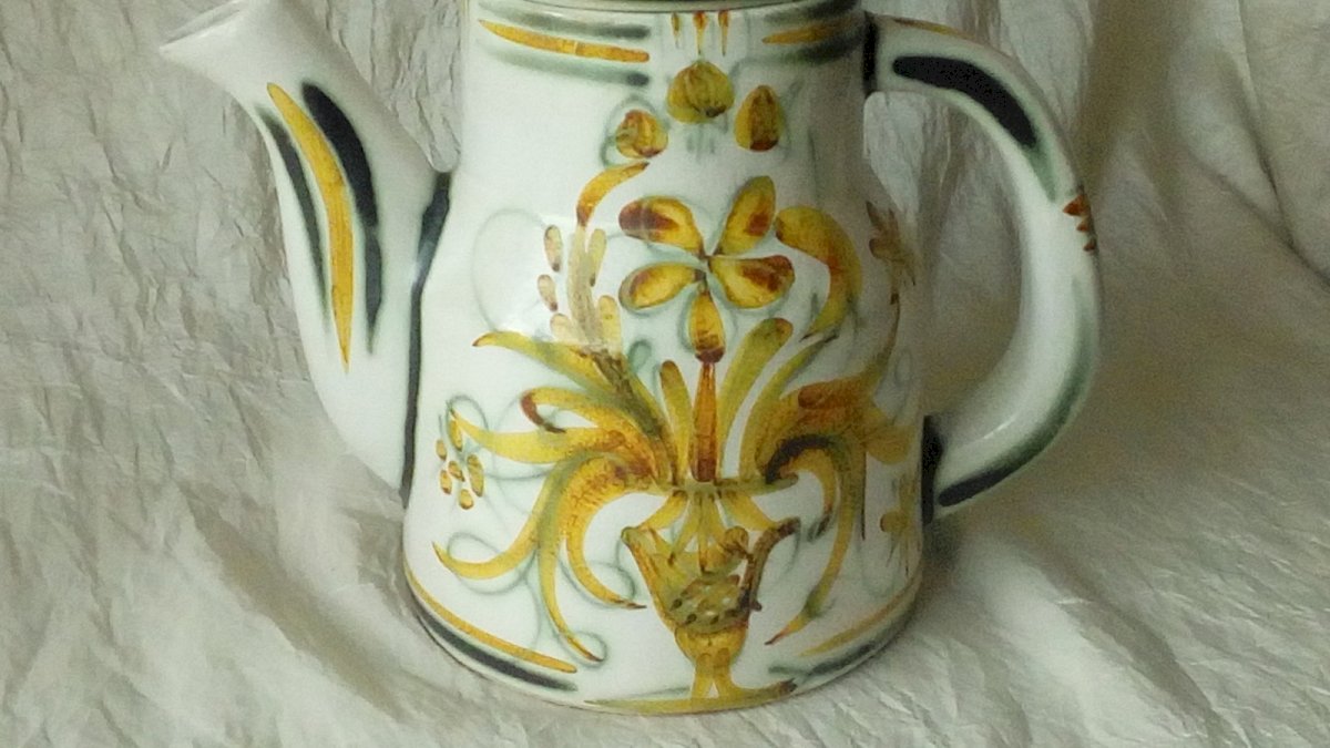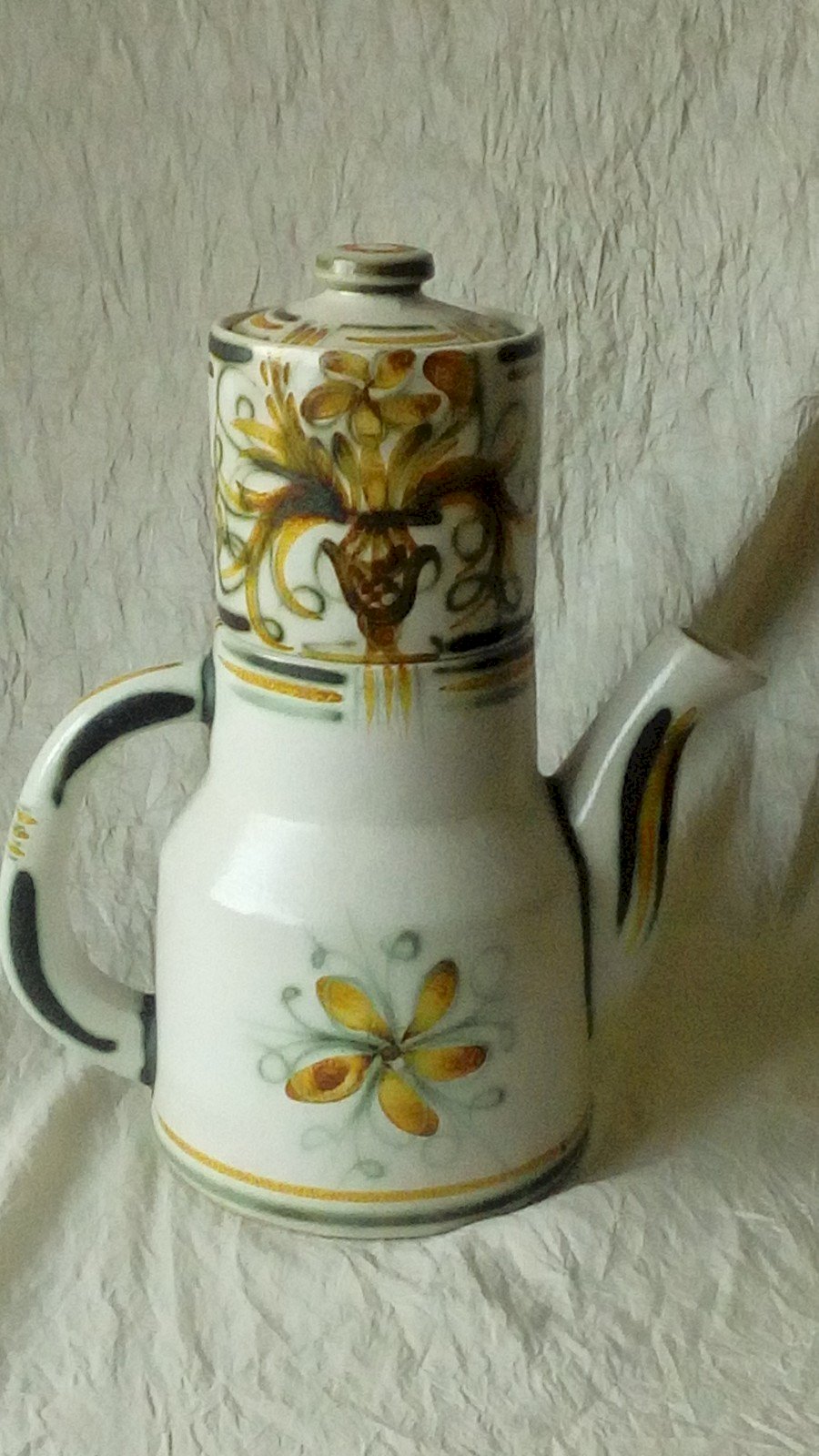 TRES BELLE CAFETIÈRE EN CÉRAMIQUE AVEC SON FILTRE KUERALUC QUIMPER HAUTEUR 27.50 cm LARGEUR 20 cm DU BEC VERSEUR A L'ANSE EN BON ÉTAT Objet:CAFETIERE Pays d'origine:France