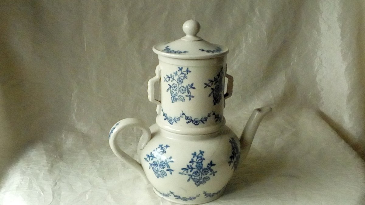 ANCIENNE CAFETIÈRE EN CÉRAMIQUE DE ST UZE DRÔME FRANCE AVEC FILTRE HAUTEUR 25 cm LARGEUR 22 cm DU BEC VERSEUR A L'ANSE EN BON ETAT SEULEMENT 1 FEL D'USURE SUR LA PARTIE BASSE VISIBLE SUR LES PHOTOS