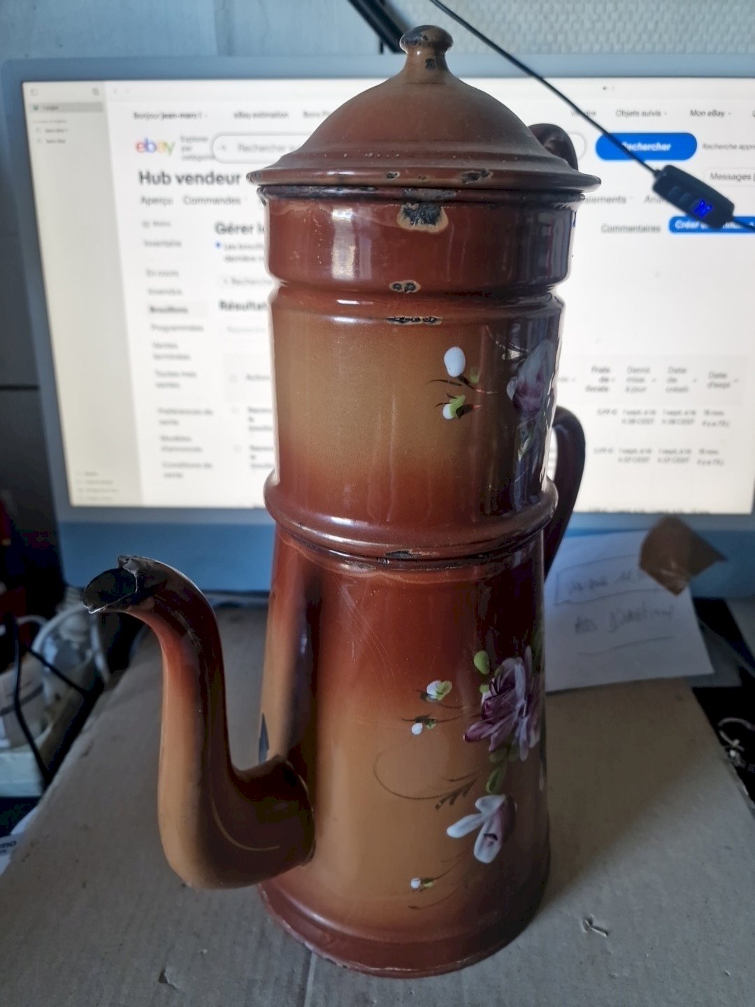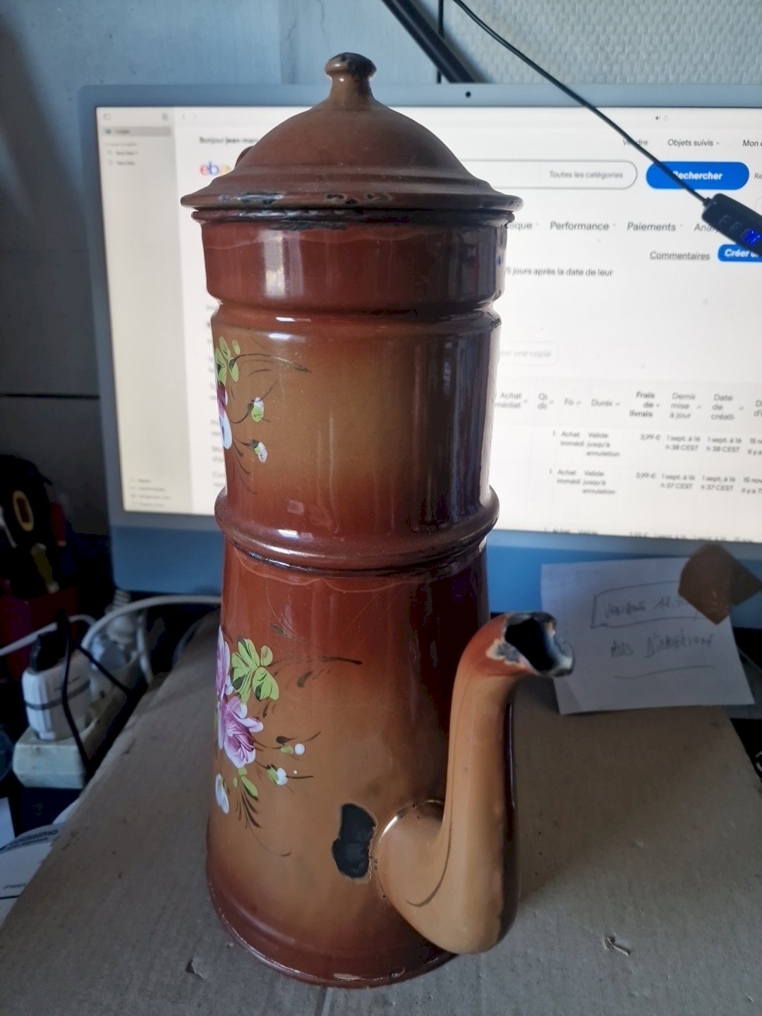 assez bon , petits manques d'email État:Occasion: Objet ayant été utilisé. Consulter la description du vendeur pour avoir plus de détails ...Occasion: Objet ayant été utilisé. les éventuelles imperfections. Pays d'origine:France Couleur:Multicolore Nombre de pièces:1 Type:Cafetière Matière:Tôle émaillée