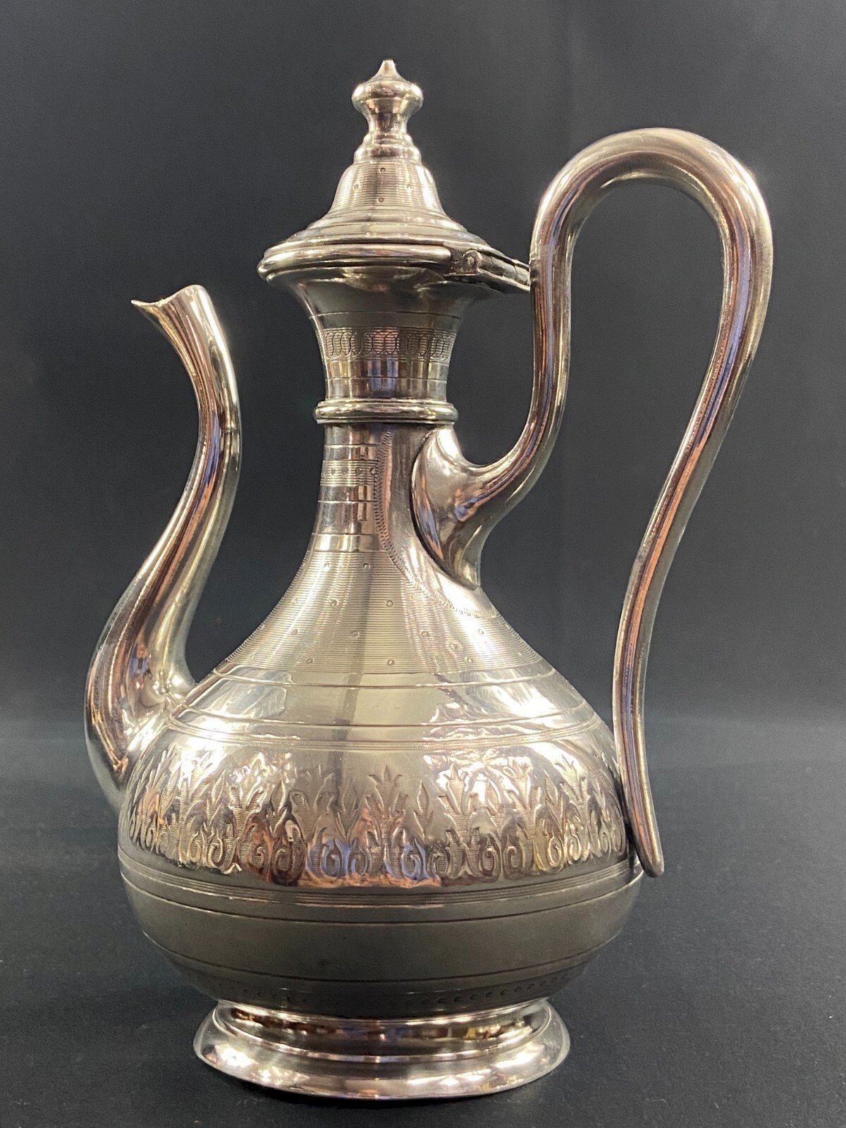 Cafetière XIXe en métal argenté à riche décor guilloché Napoléon III