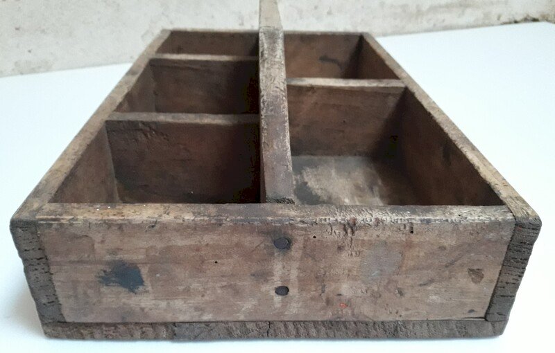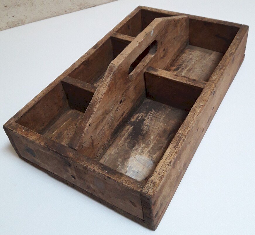 caisse à outils ancienne 39,3x24,5cm bois poignée intégrée ref616 Marron