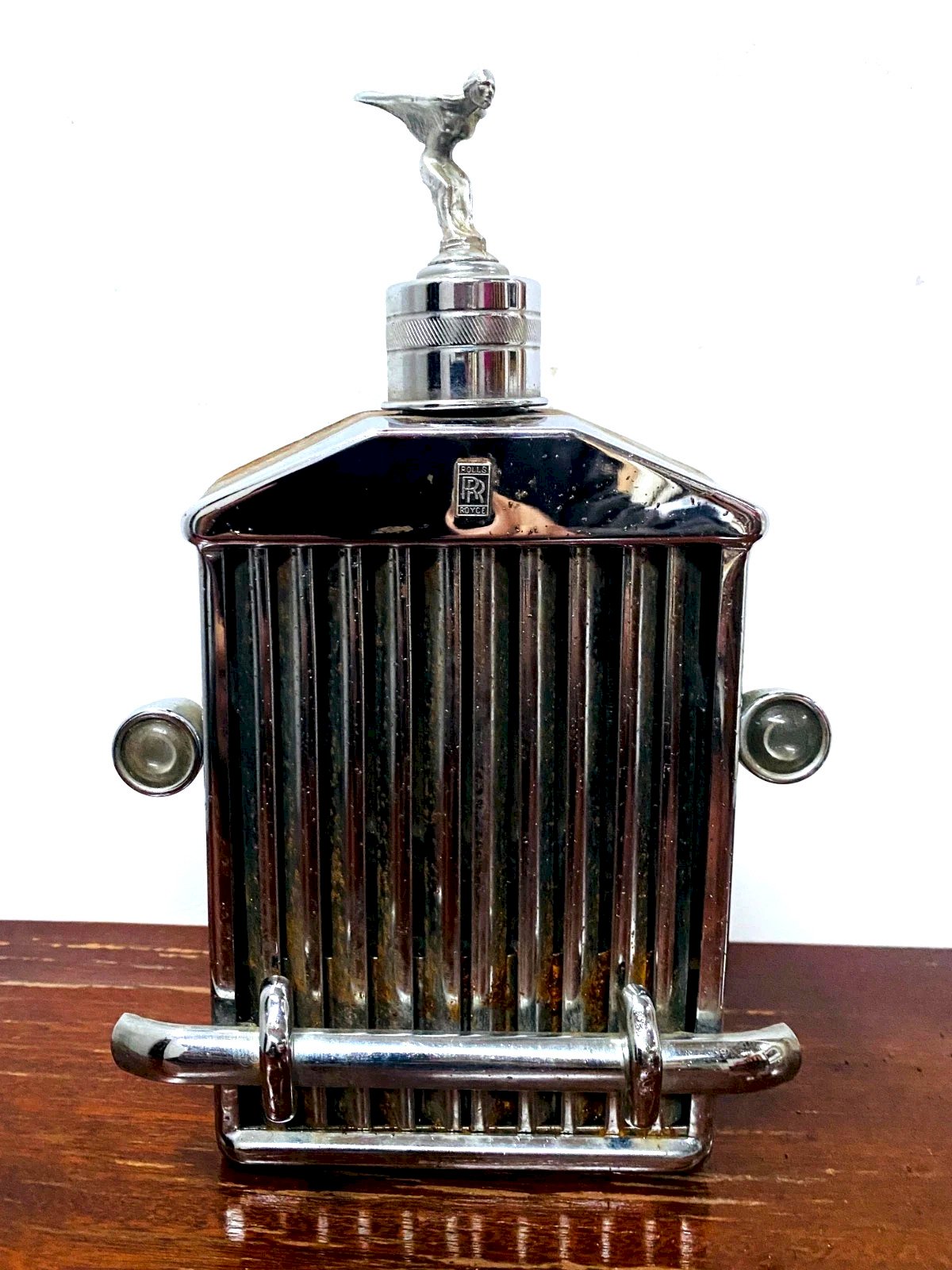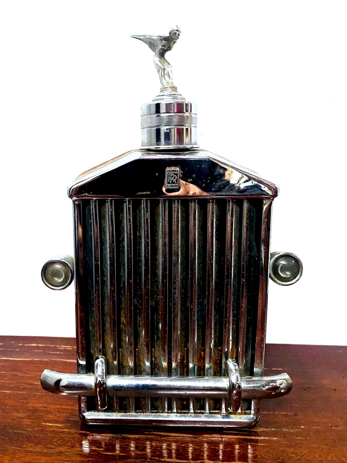 Calandre de ROLLS ROYCE en gourde a wisky et boite a musique XX siècle