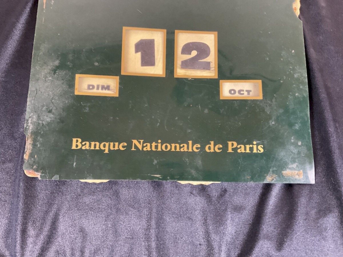 CALENDRIER PERPETUEL PUBLICITAIRE banque BNP  VINTAGE Attention à l état le plastique et abîme sur les angles  Dimension : 33,5 x 24 cm État:Occasion: Objet ayant été utilisé. Consulter la description du vendeur pour avoir plus de détails ...Occasion: Objet ayant été utilisé. les éventuelles imperfections. Pays d'origine:France
