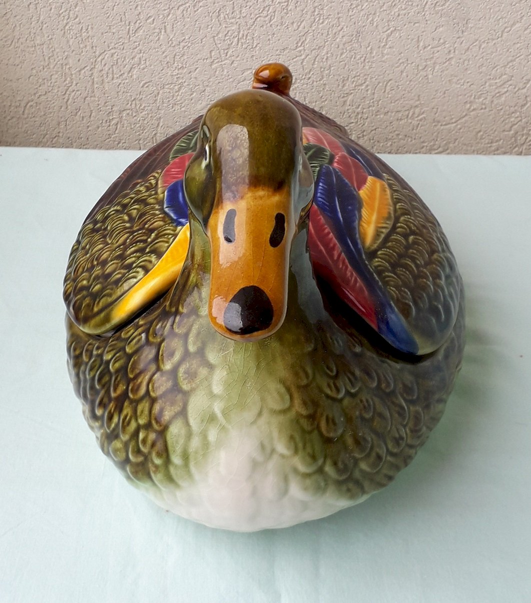 Grand canard en céramique, sans indication de manufacture, avec une partie amovible.
