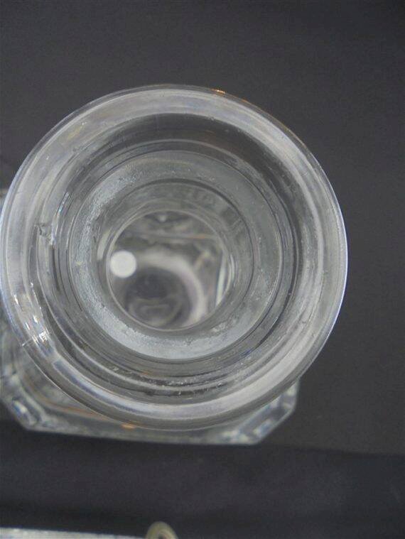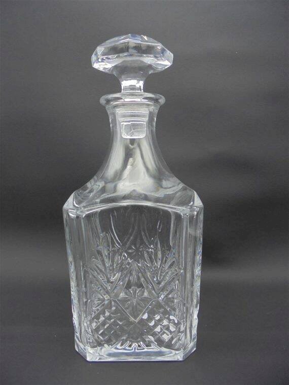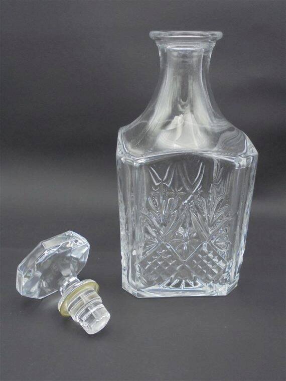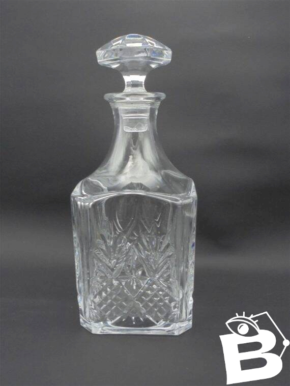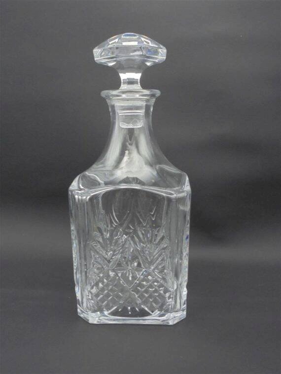 Carafe à alcool en cristal, décor ananas.Le bouchon et l’intérieur du col comportent de petits éclats visibles sur les photos.Dimensions: 10.5 X 10.5 X 20 cm.( 25 cm avec son bouchon)Poids: 1.6 kg.