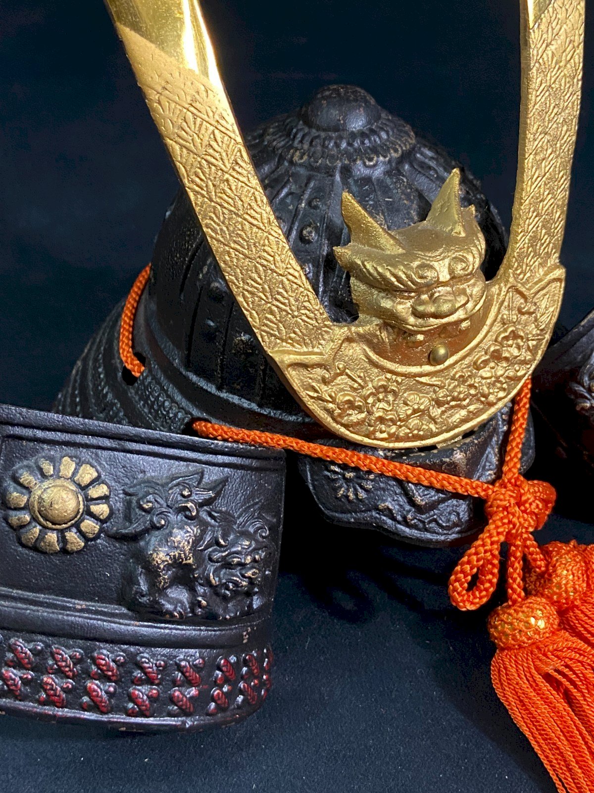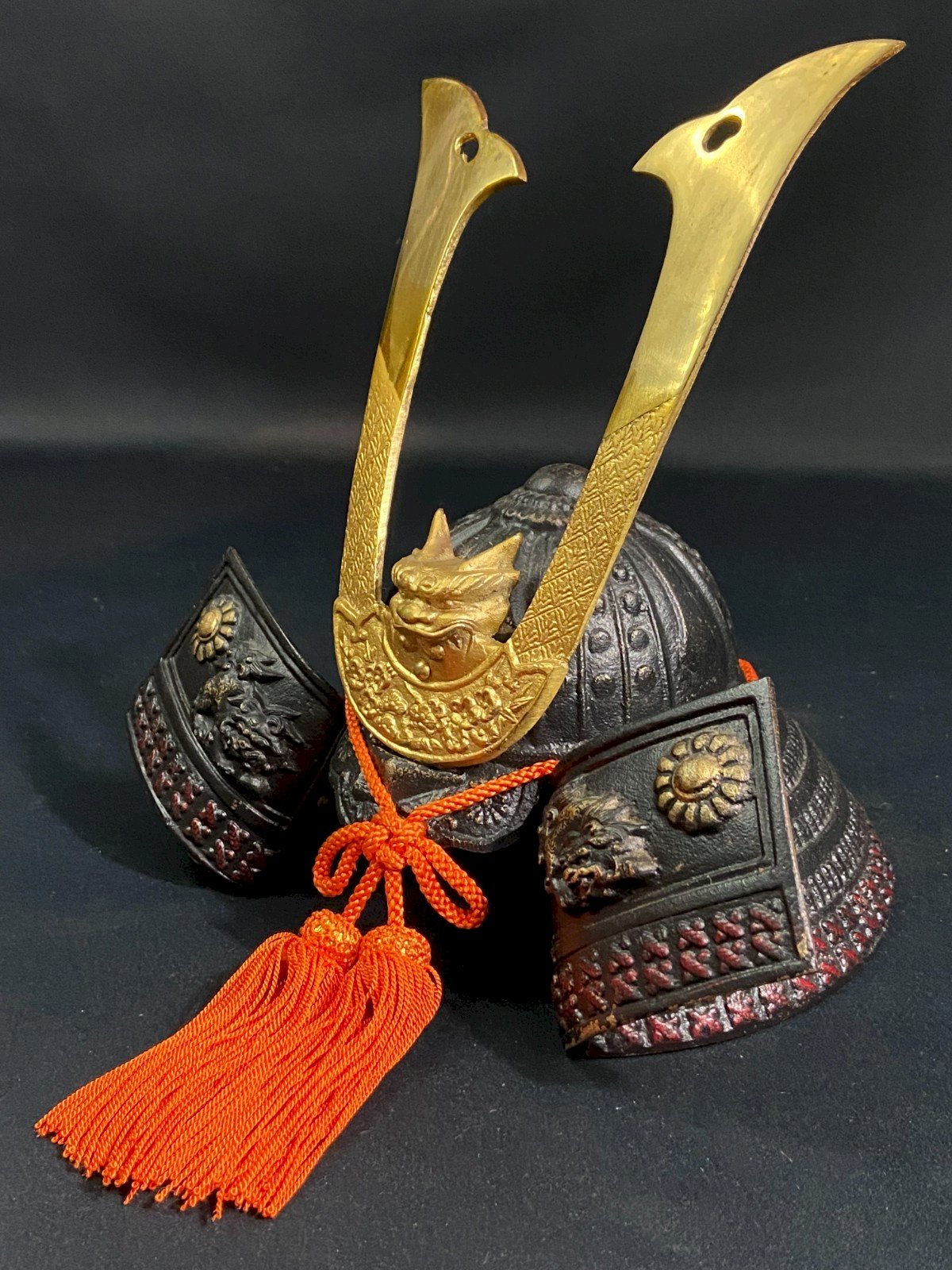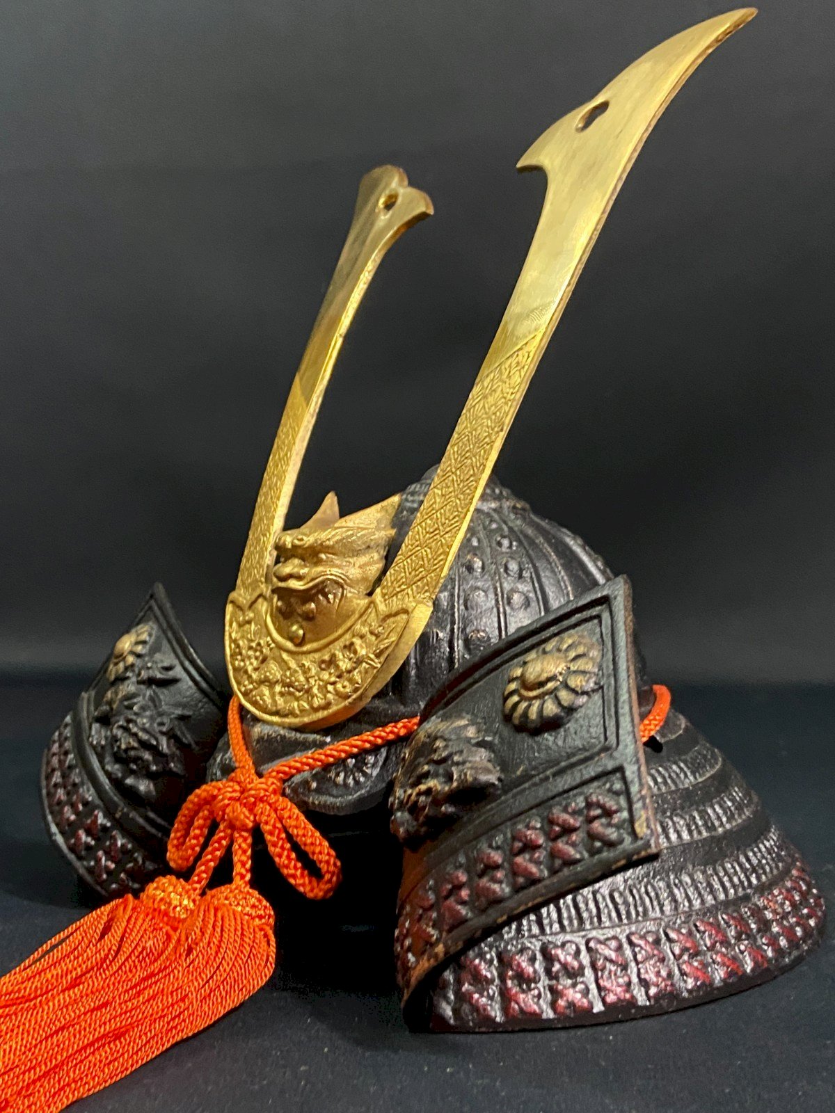 Casque de Samouraï kabuto Gendai en bronze avec Kuwagata-dai et sujibachi Japon