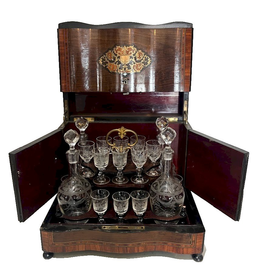 Cave A Liqueur Complète Boulle Coffret Napoléon III Boite Marqueterie XIX Siècle