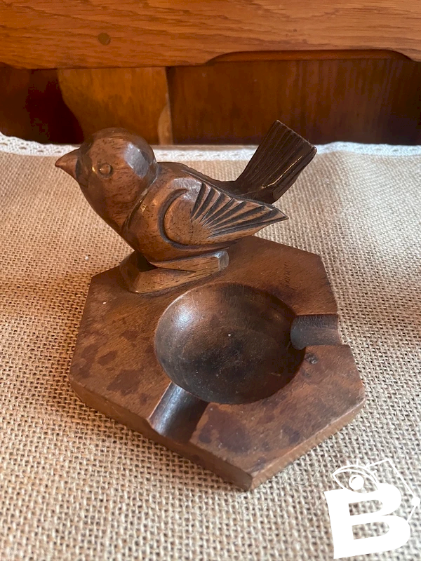 Vide poche cendrier en bois ancien oiseau