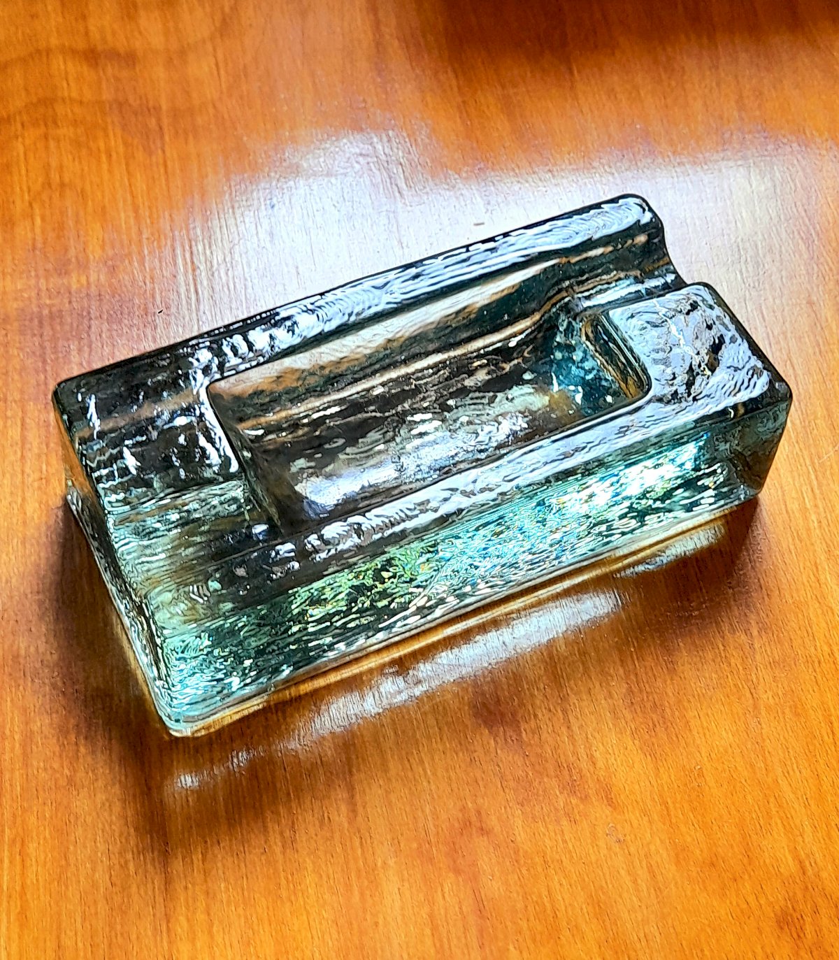 superbe cendrier Murano verre de Murano pailletee Or vers 1960 décor bleu