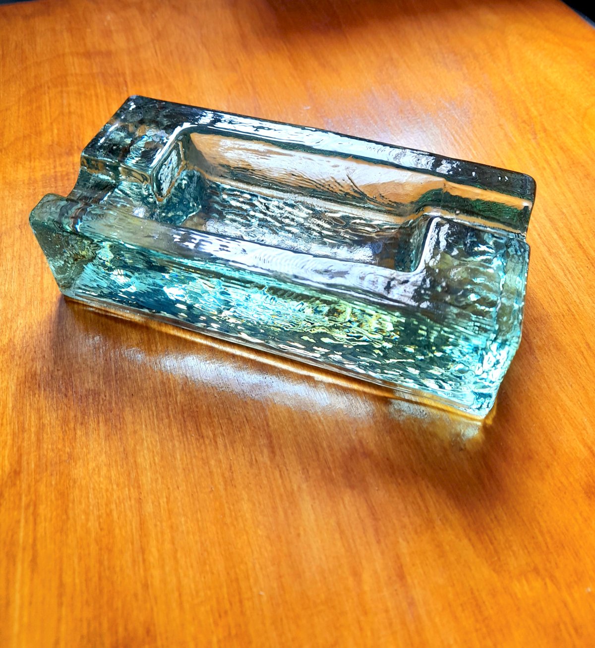 Coupe, cendrier ou vide-poche Art Déco, verre massif bleu, Murano
