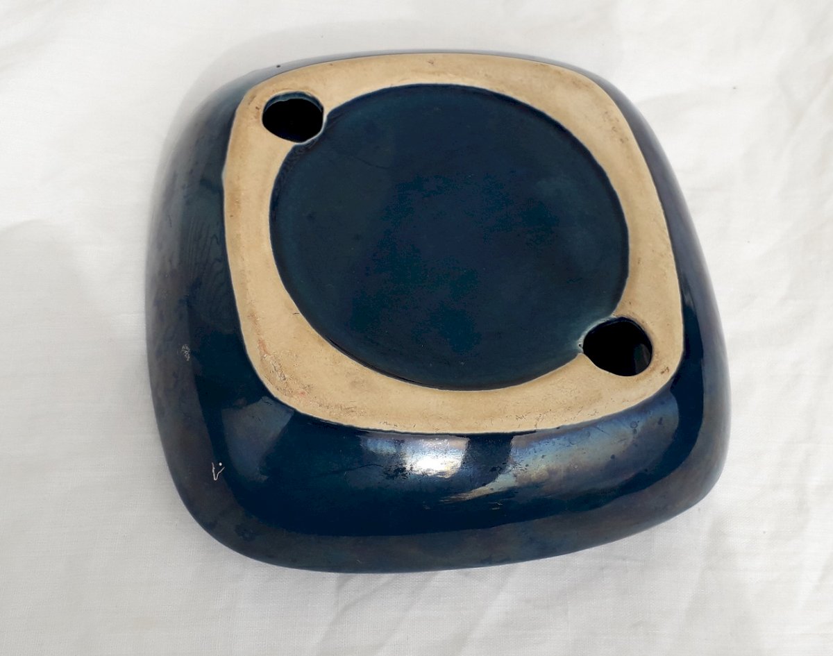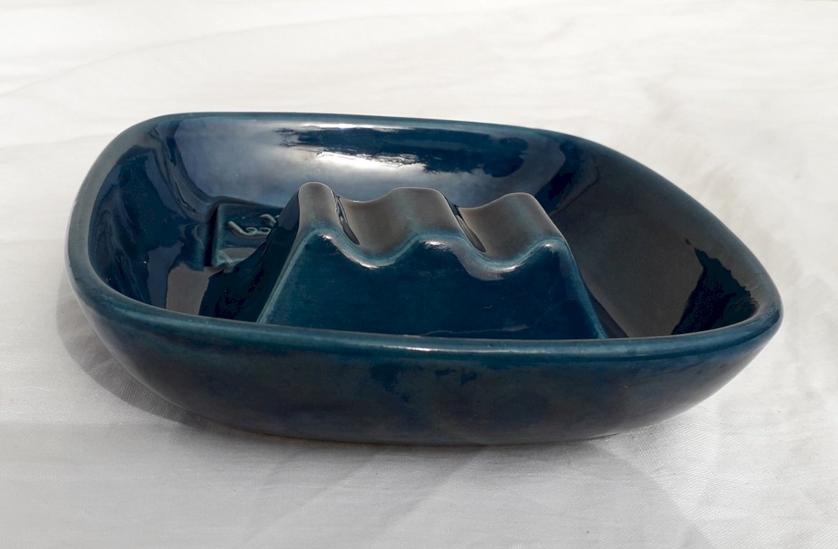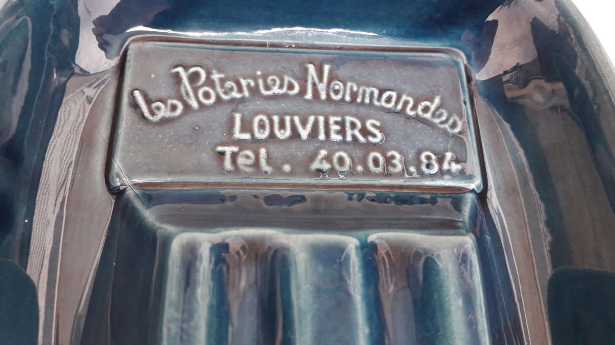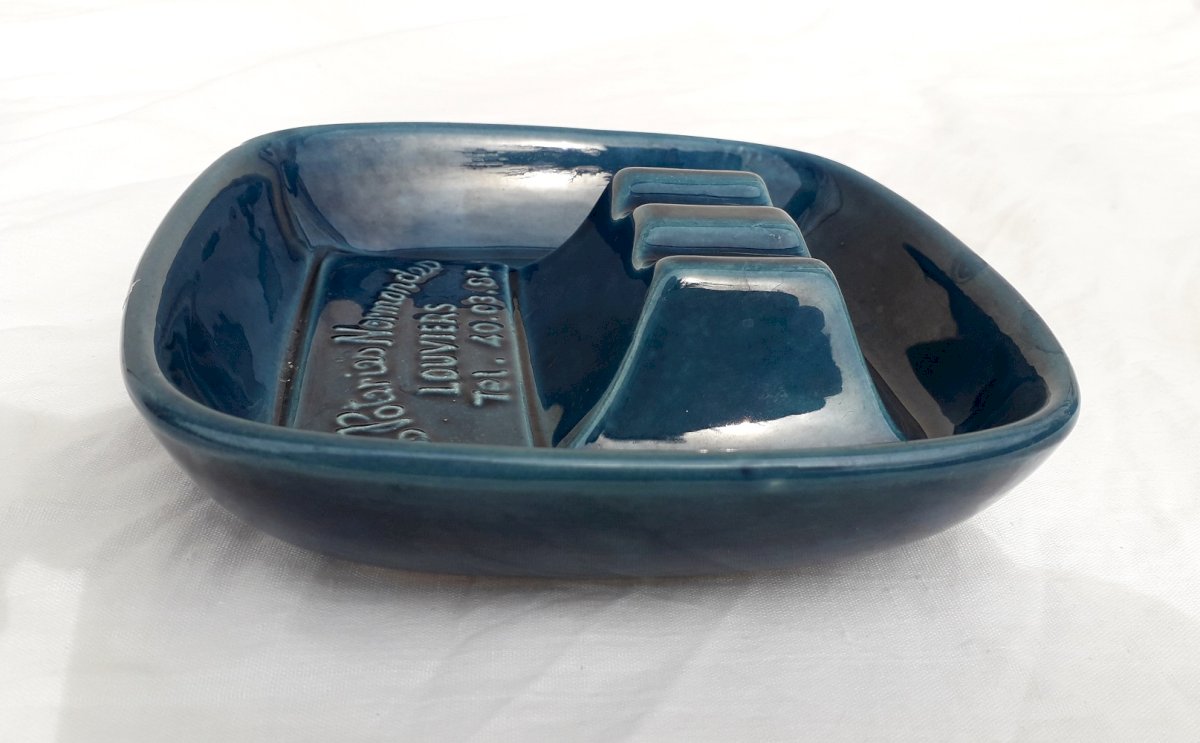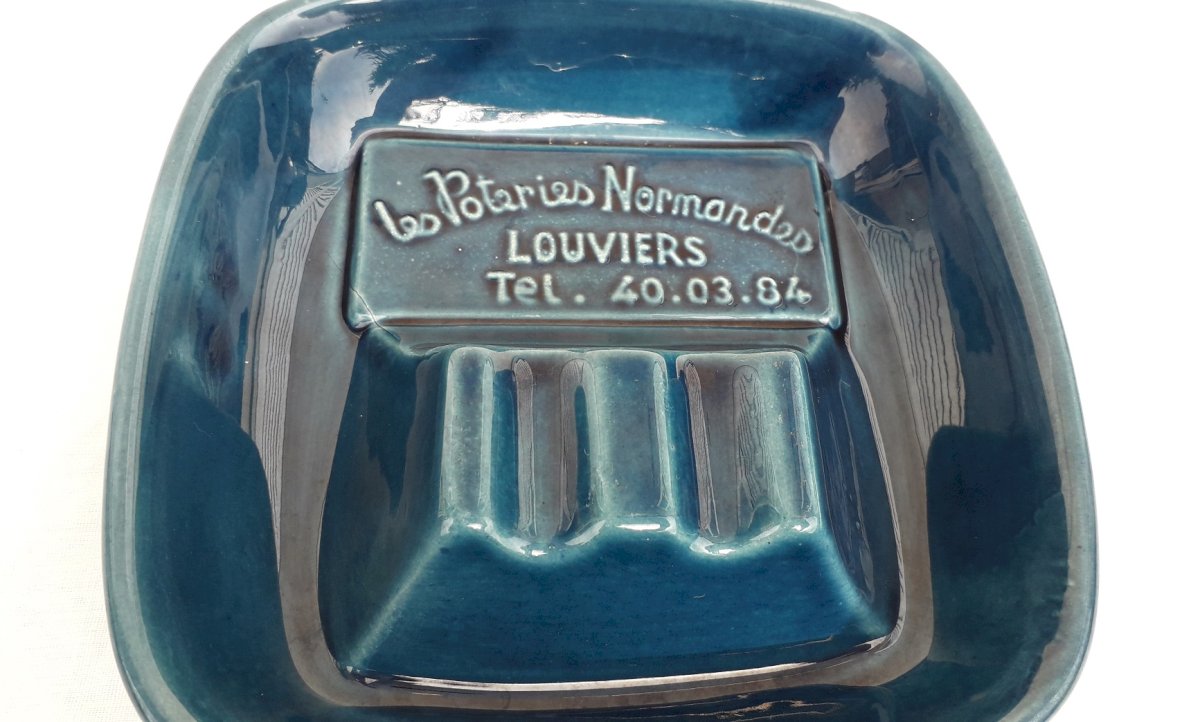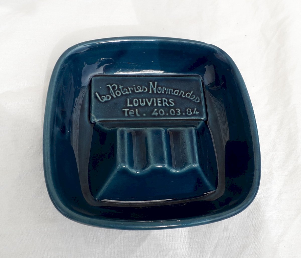 Cendrier bleu "Les poteries normandes Louviers" en céramique.